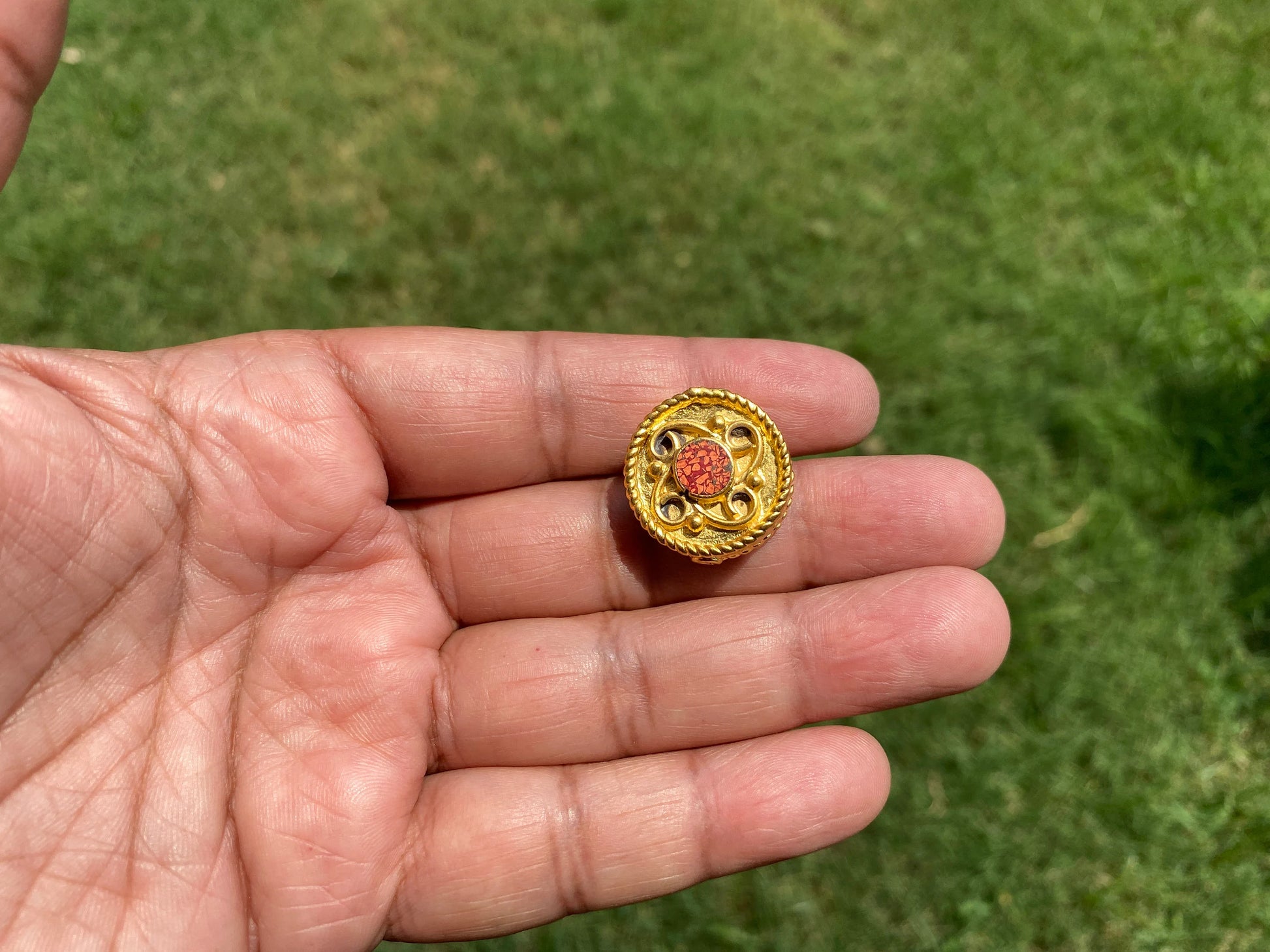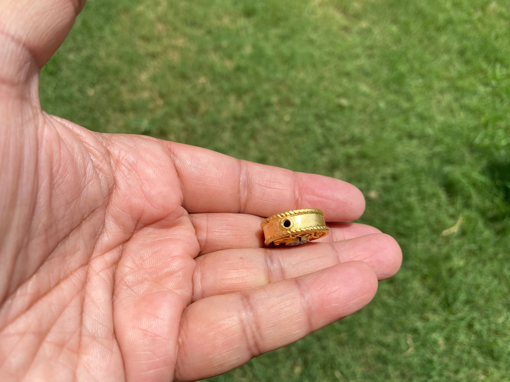 20mm Tibetan Bead, High Quality Brushed Gold Overlay Over Brass Bead with Anti Tarnish, Coral or Lapis Inlay Beads for Necklace or Bracelet