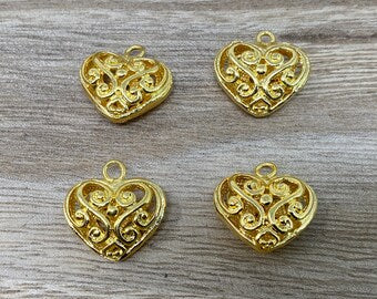 21x20mm, 18k Shiny Gold, Filigree Heart Charms, Gold Heart Charms, Heart Necklace Charms, Bracelet Charms, Gold Plated Finding, Anti Tarnish