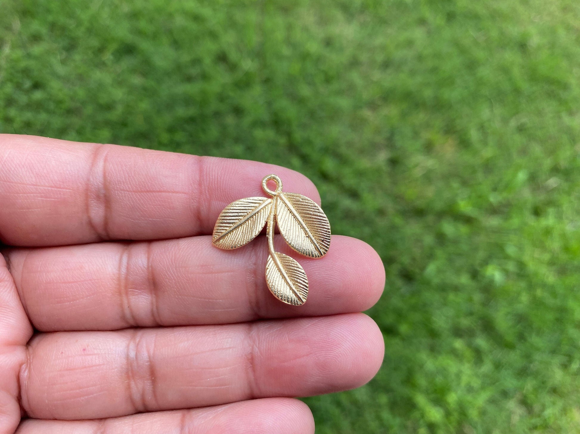 These beautiful leaf charms made with high quality 14k Gold overlay over copper. These Charms are sure to make an impact on your jewelry project. These charms would be a great addition to your necklace, earring or bracelet project. Measurement: approximately length 27 mm Rhombus shapes (measuring from bail to bottom), width 24 mm (from wide side), bail size: 4 mm and weighs about 2.10 gm.