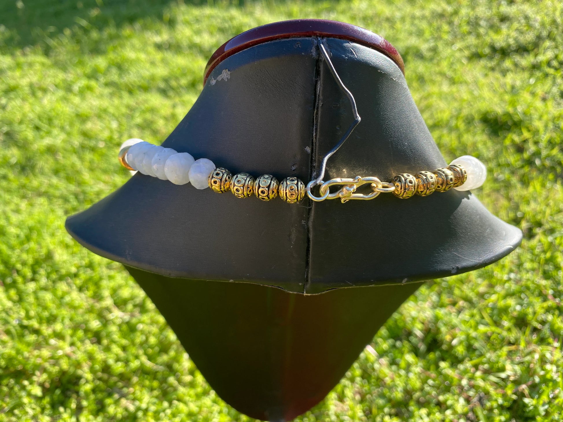 This is a truly majestic piece of jewelry statement long necklace. It is a beautiful and unique accessorize which will make a stunning addition to your costume. 100% handmade necklace with beautiful faceted natural Rainbow Moonstone gemstone with focal Brass bead made with 18k Brushed Gold overlay over brass with anti tarnish. The necklace looks more beautiful in real life. If you need any more information please do not hesitate to contact me.