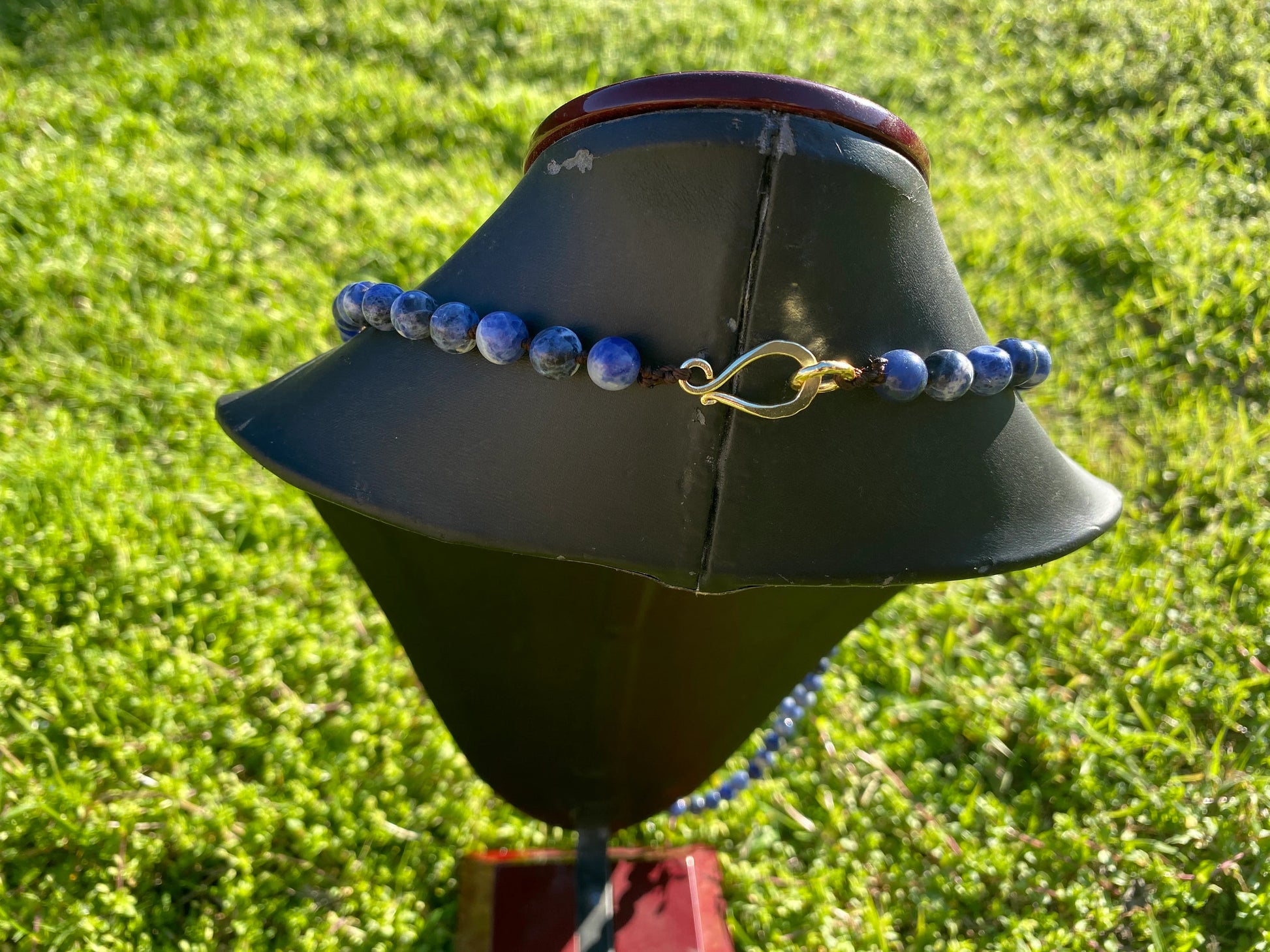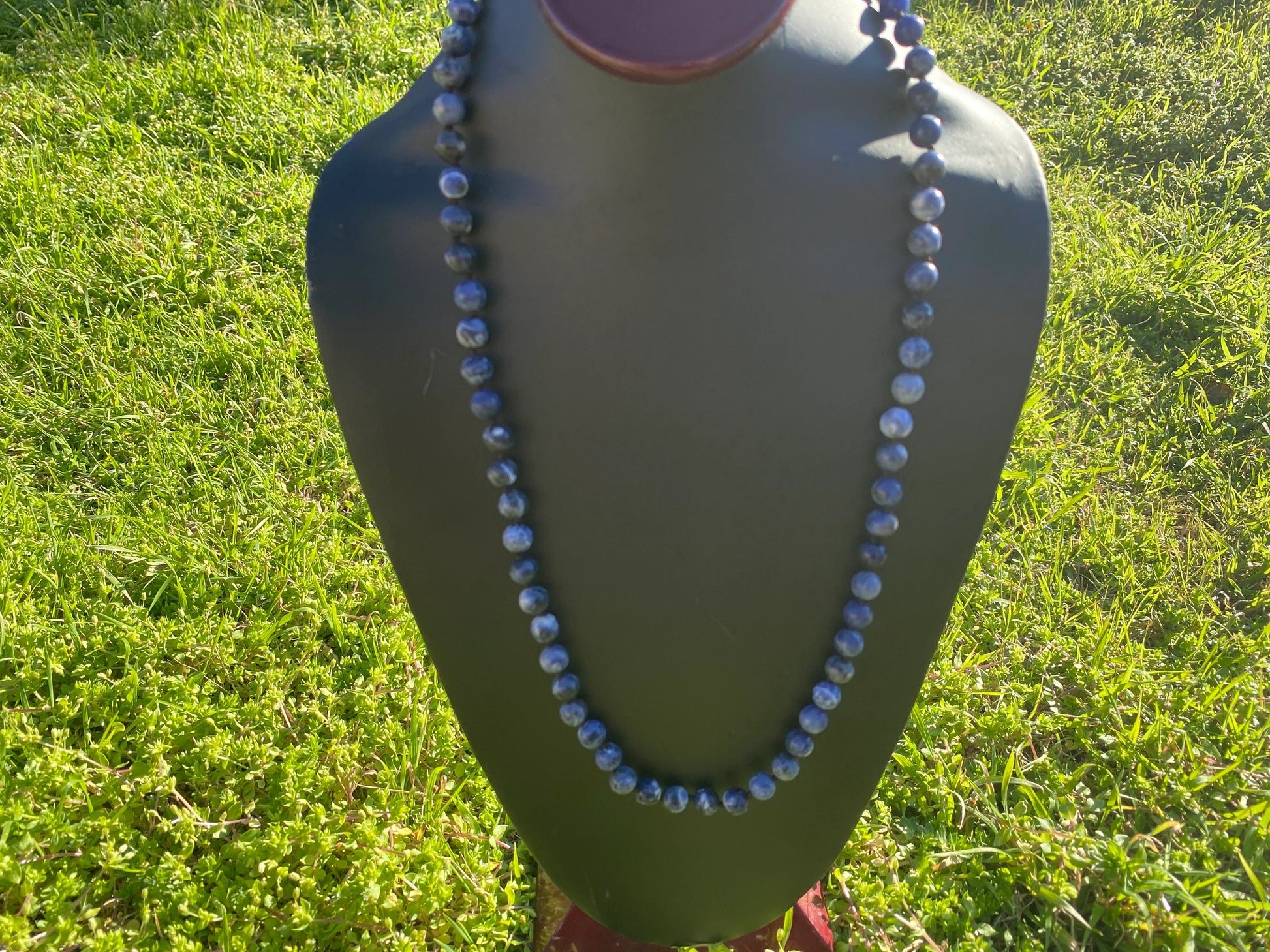 32" Long 8 mm Sodalite Bead Necklace, Gold Overlay S-Hook Closure, Everyday Wear Necklace, Bohemian Fashion, Trendy Necklace, Boho Chic