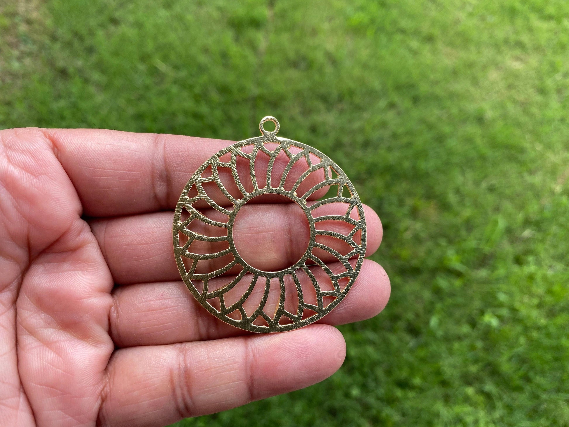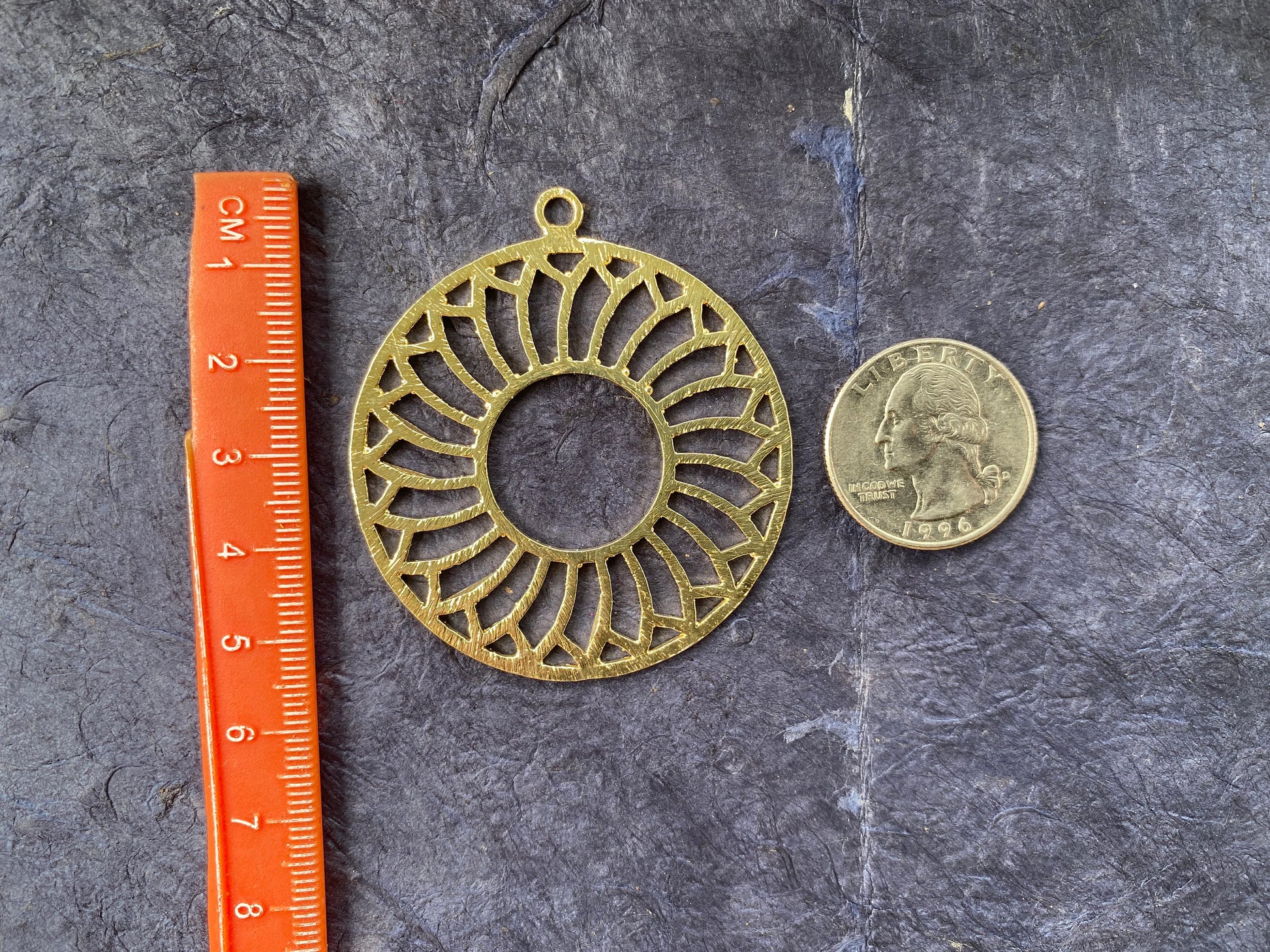 53X48mm, Large Brushed Gold Overlay Over Copper Daisy / Sunshine Circle Shaped Components for Earrings or Dainty Necklace, Bridesmaids