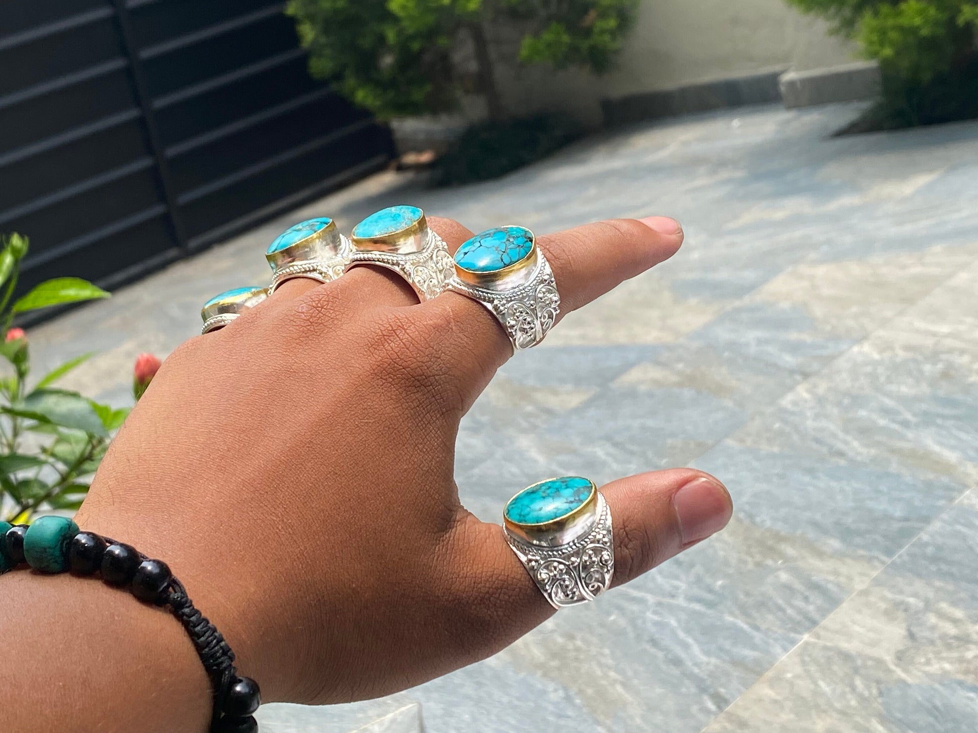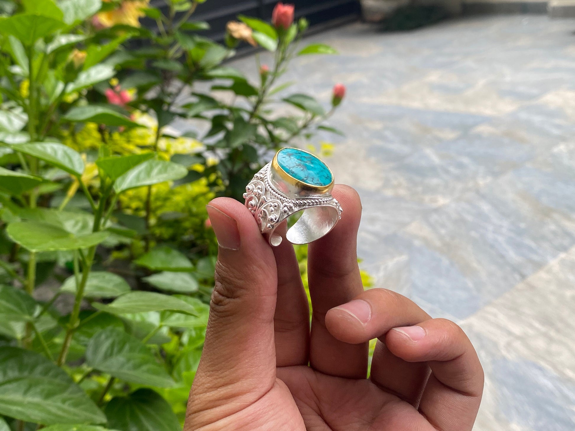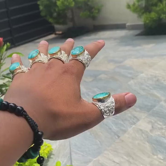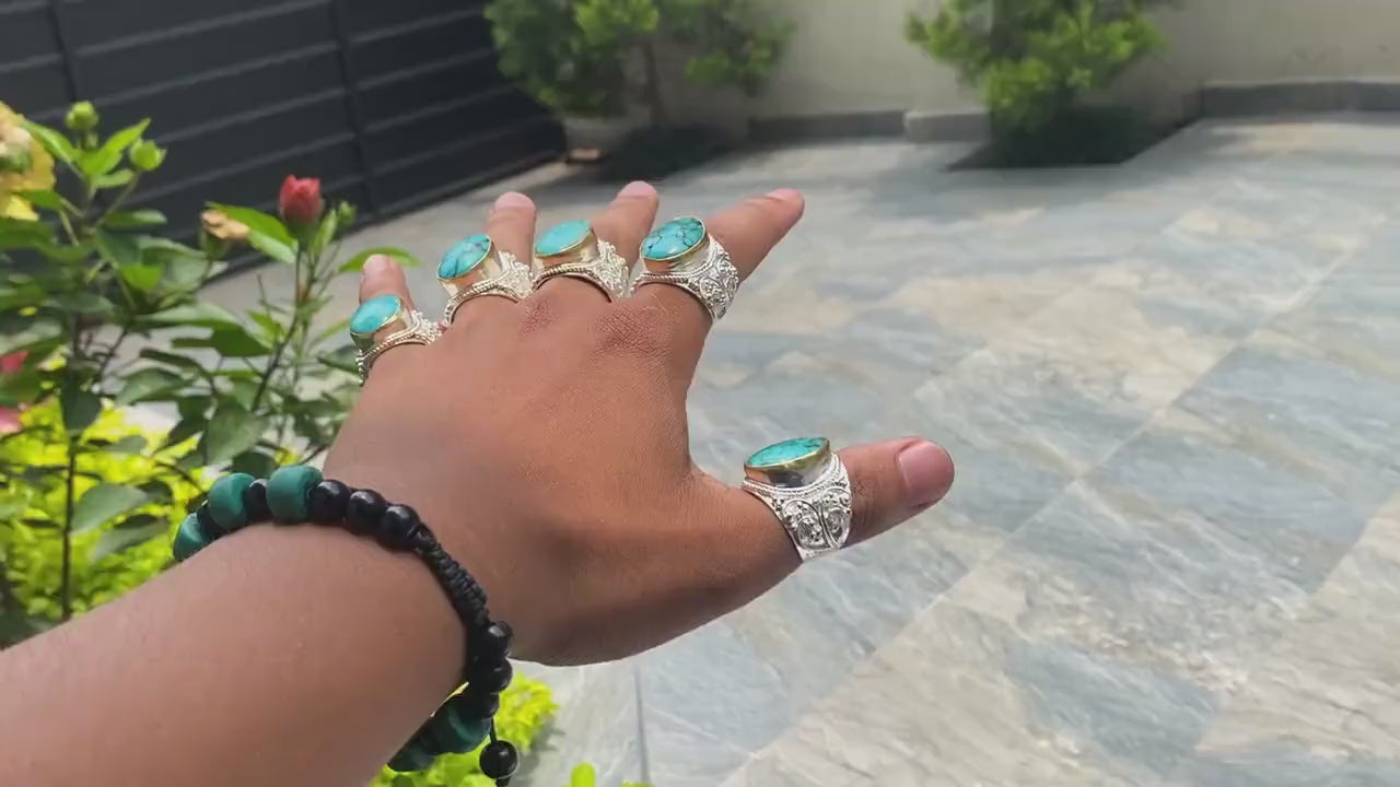 Ring Size: Adjustable (One size fits most) can size up or downStone: Natural Turquoise Measurement: Ring: Approximately 90.00 mm X 25.00 mm ( From widest Side) , Weight: 15.00 gm,