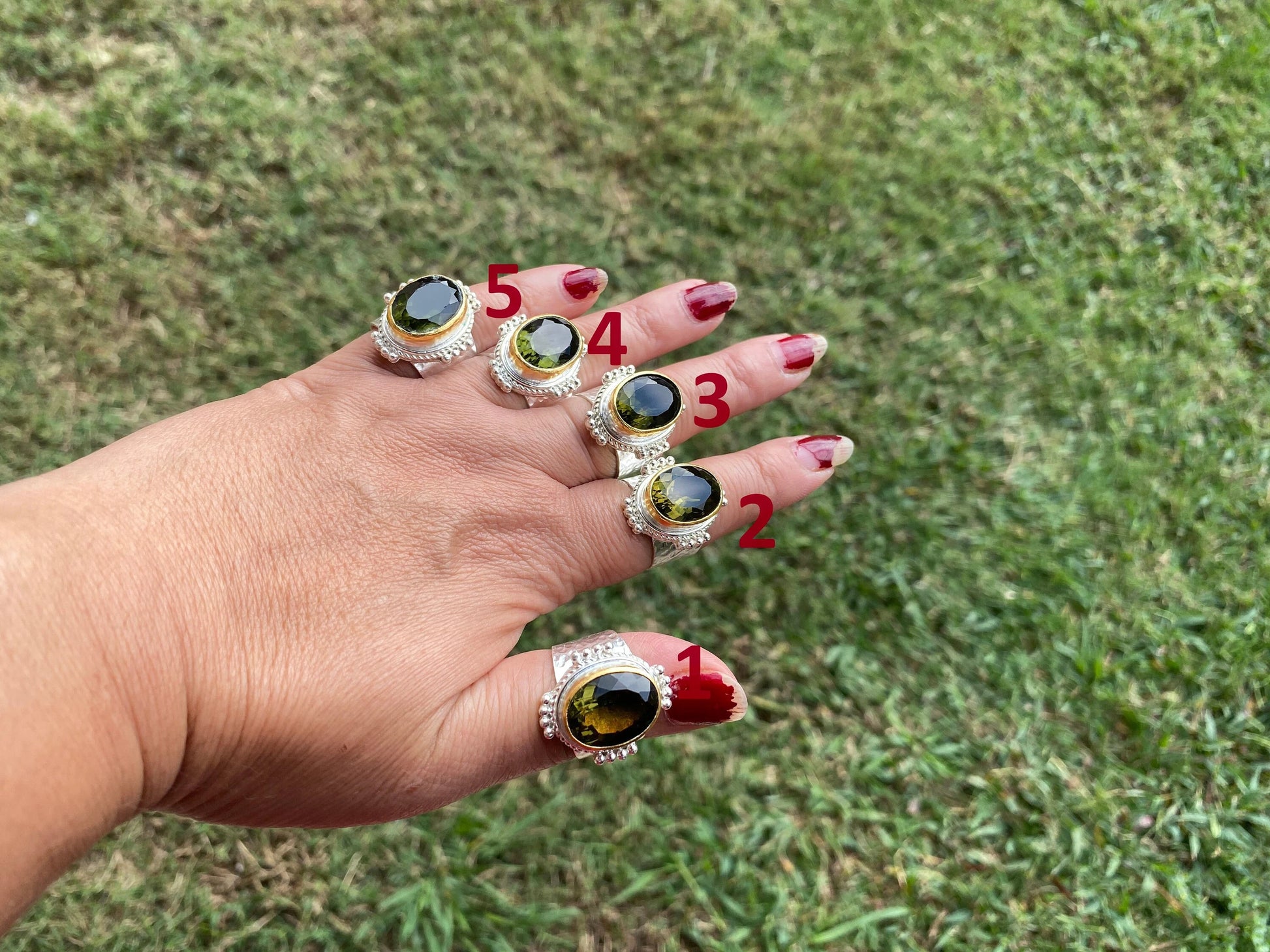 Adjustable Apatite Gemstone Two Tone Ring, Gold and Silver Overlay, Handmade Ring, Women Jewelry, Bohemian Jewelry, Energy Stone Ring