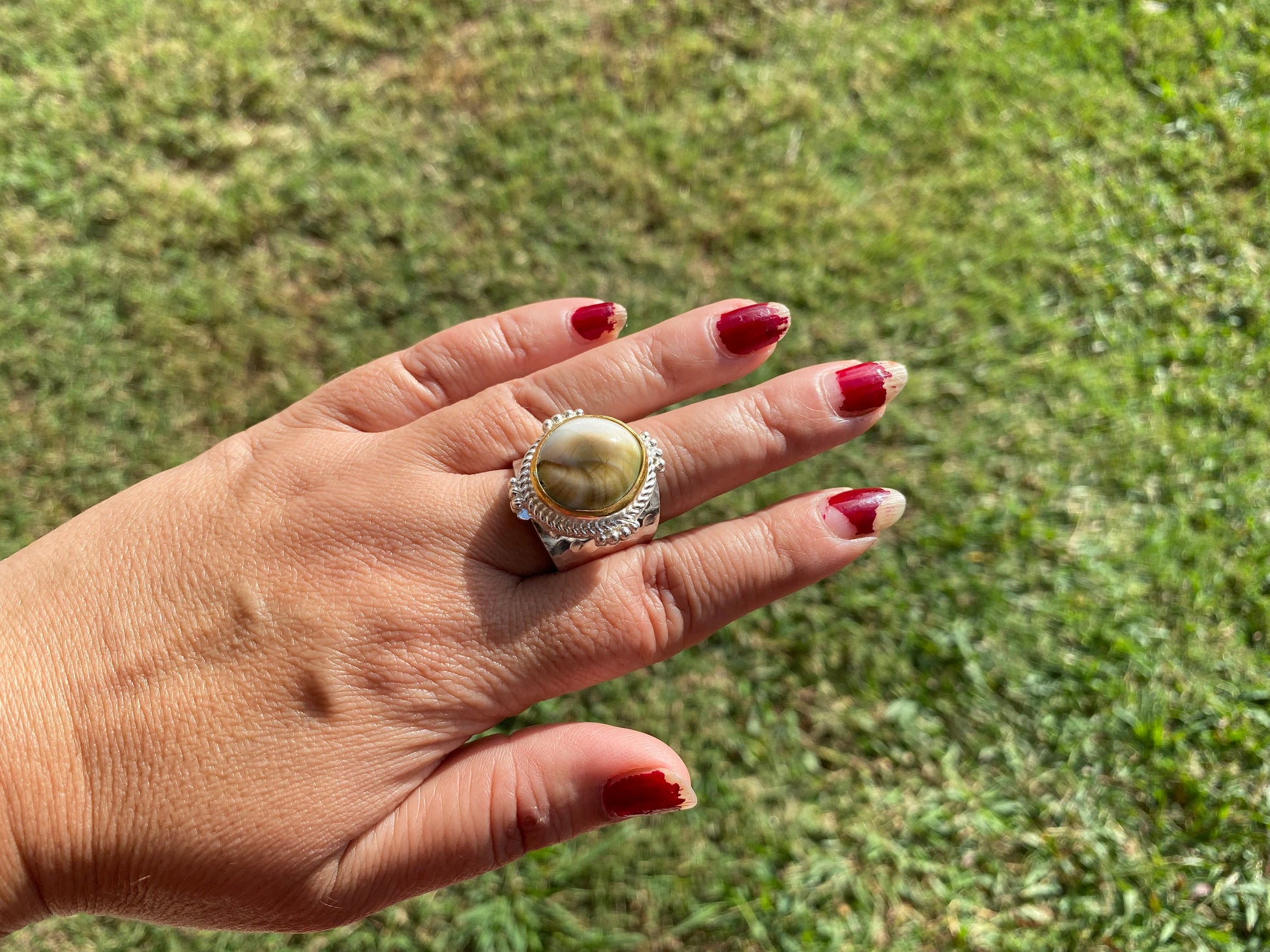 Ring Size: Adjustable (One size fits most) can size up or downStone: Crunch Shell