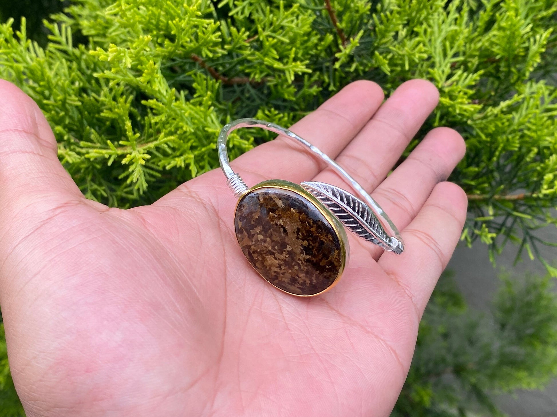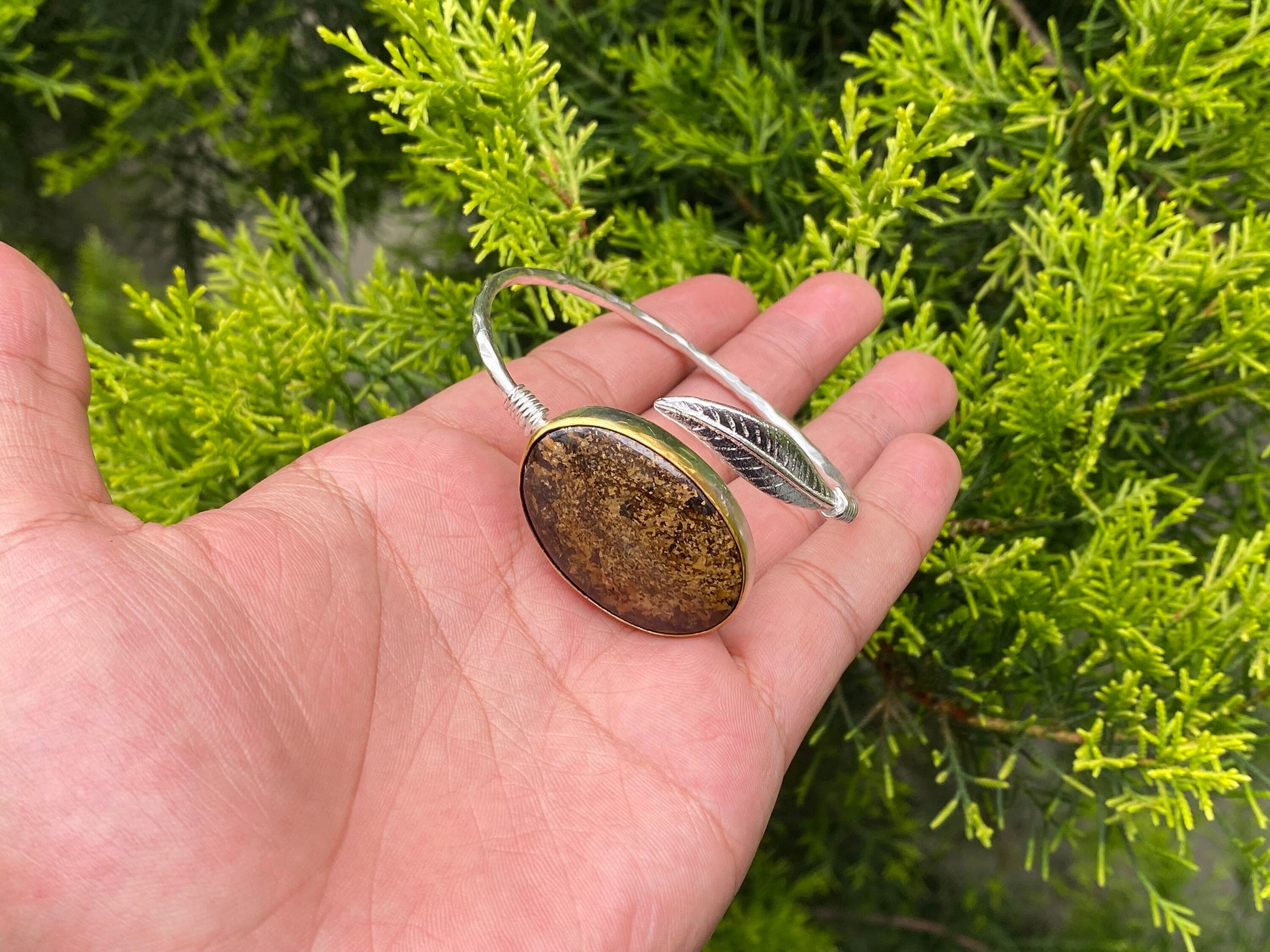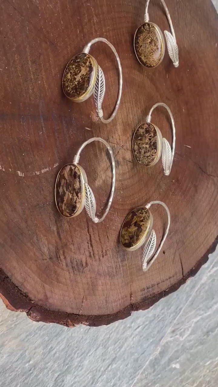 Adjustable Floral inspired Two Toned Bracelet, Brushed Gold and Silver overlay over Brass, Natural Jasper Stone Aesthetic Bracelet, Gift.