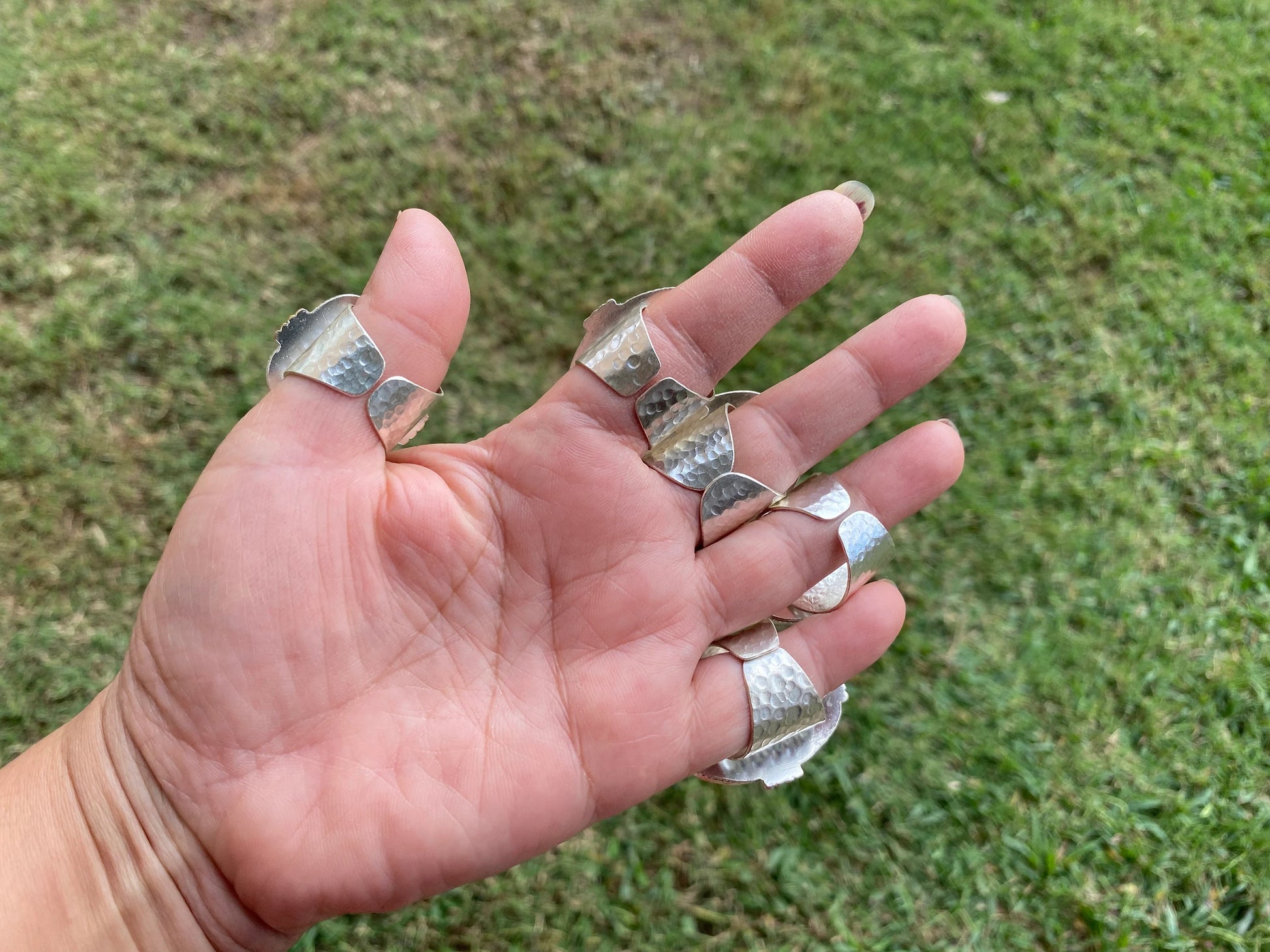 Measurement: # 1 -Ring: Approximately 32 mm X 33 mm ( From widest Side) , Weight: 21.70 gm,# 2 -Ring: Approximately 40 mm X 30 mm ( From widest Side) , Weight: 21.00 gm,# 3 -Ring: Approximately 43 mm X 32 mm ( From widest Side) , Weight: 26.20 gm,# 4 -Ring: Approximately 35 mm X 25 mm ( From widest Side) , Weight: 17.10 gm,# 5 -Ring: Approximately 40 mm X 30 mm ( From widest Side) , Weight: 23.90 gm,