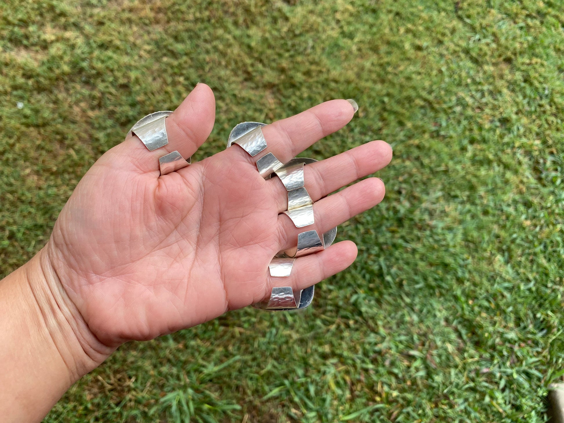 Measurement: # 1 -Ring: Approximately 35 mm X 23 mm ( From widest Side) , Weight: 24.10 gm,# 2 -Ring: Approximately 37 mm X 33 mm ( From widest Side) , Weight: 21.50 gm,# 3 -Ring: Approximately 43 mm X 30 mm ( From widest Side) , Weight: 28.20 gm,# 4 -Ring: Approximately 40 mm X 29 mm ( From widest Side) , Weight: 24.60 gm,# 5 -Ring: Approximately 38 mm X 30 mm ( From widest Side) , Weight: 25.00 gm,