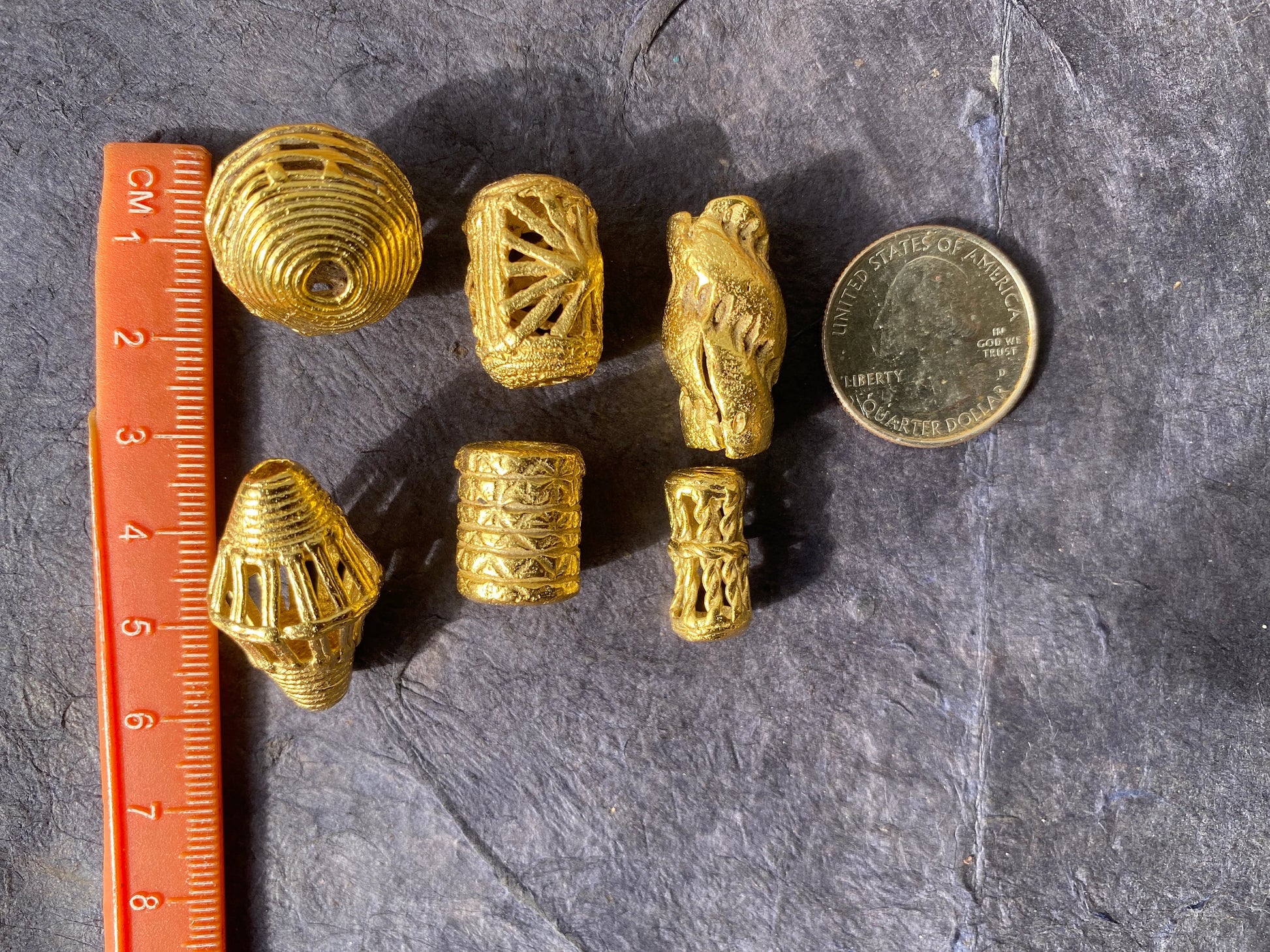 African Guru Beads, 18K Brushed Gold Overlay Non Tarnish, Tribal Beads, Ethnic Beads, Mala Beads for Necklace, Center Bead, Ghana Jewelry