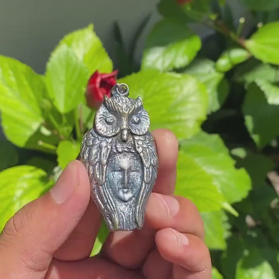 This Artful Fusion pendant features an unusual owl design that intricately covers a woman's face, intricately carved into Brass with a hammered finish. Handcrafted with love, it seamlessly fuses boho inspiration with aesthetic elegance into one versatile, unisex statement piece. It can adorn any outfit,...