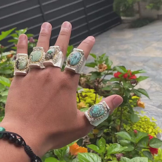 Ring Size: Adjustable (One size fits most) can size up or downStone: Natural Turquoise Measurement: Ring: Approximately 30.00 mm X 19.00 mm ( From widest Side) , Weight: 21.00 gm,