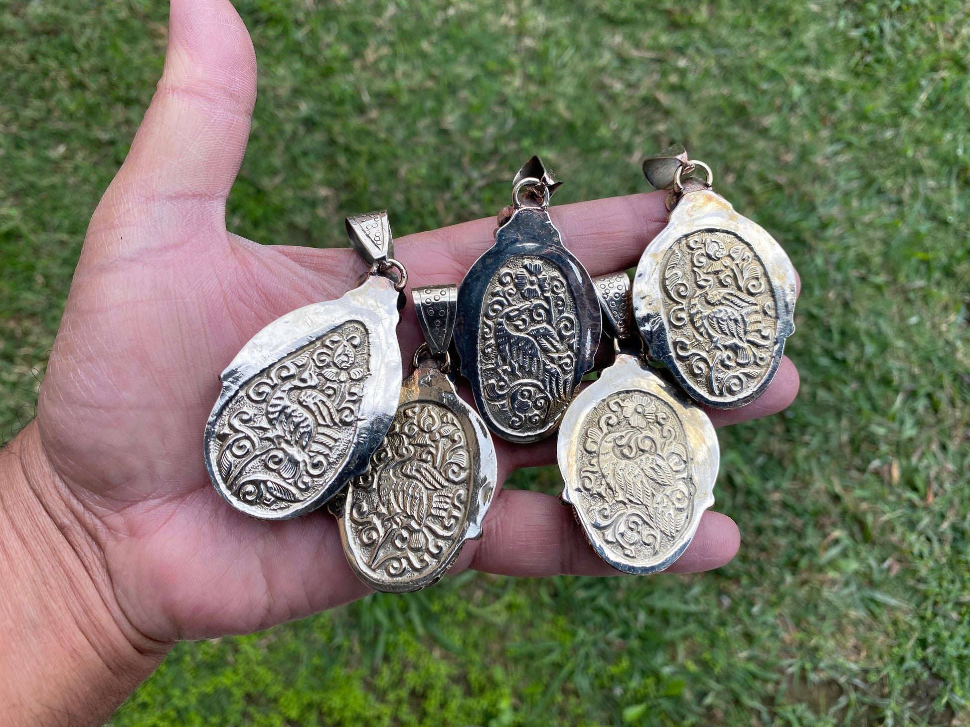 Measurement: approximately Length 70 mm (measuring from bail to bottom), width 35 mm from the widest side, bail size: 8 mm and weight about 34.20 gm.