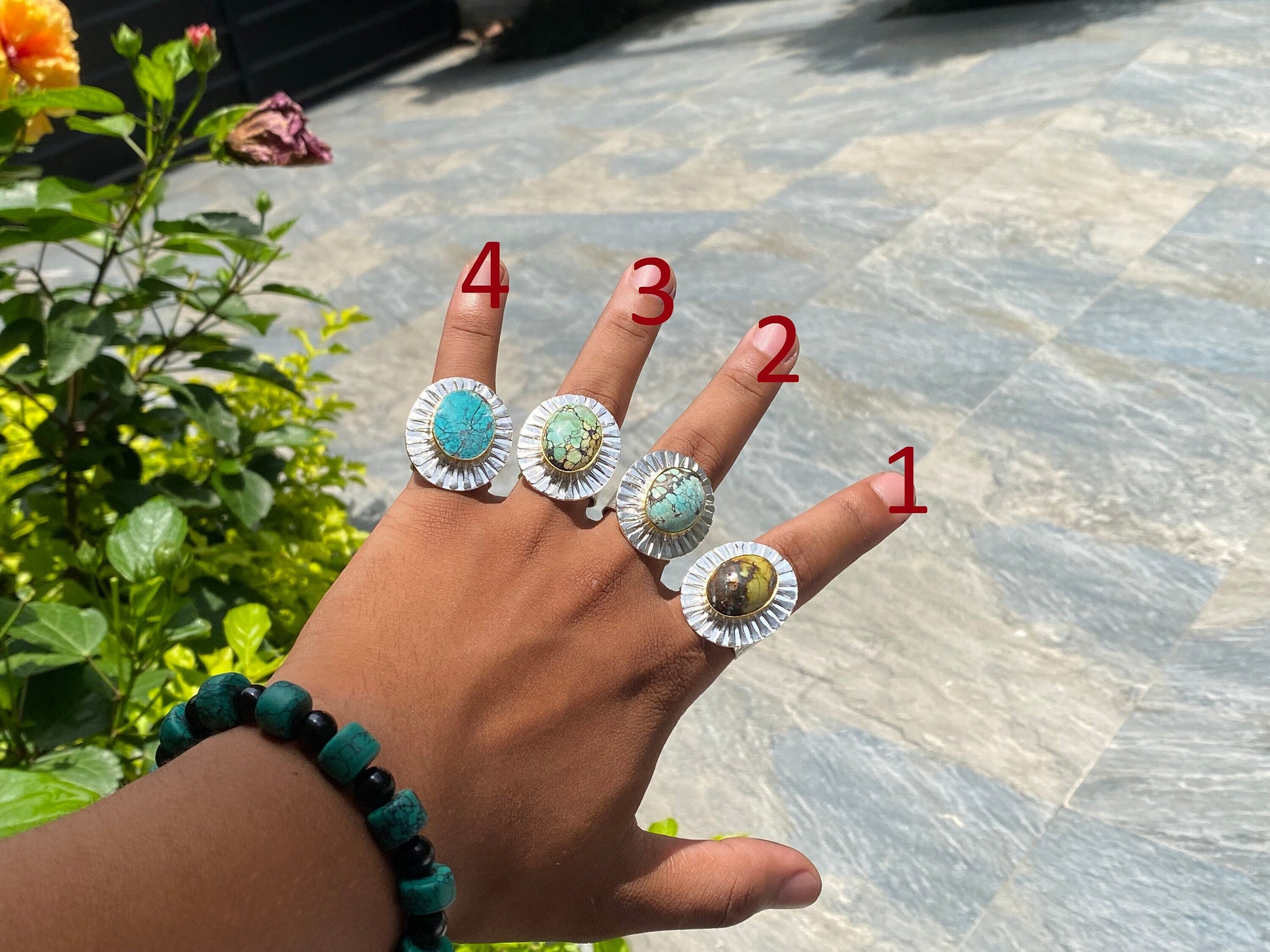 Beautiful Handmade Ring - Gold & Silver Overlay on Brass, Natural Gemstone Ring, Adjustable Ring, Boho fashion Ring, Unisex Ring.