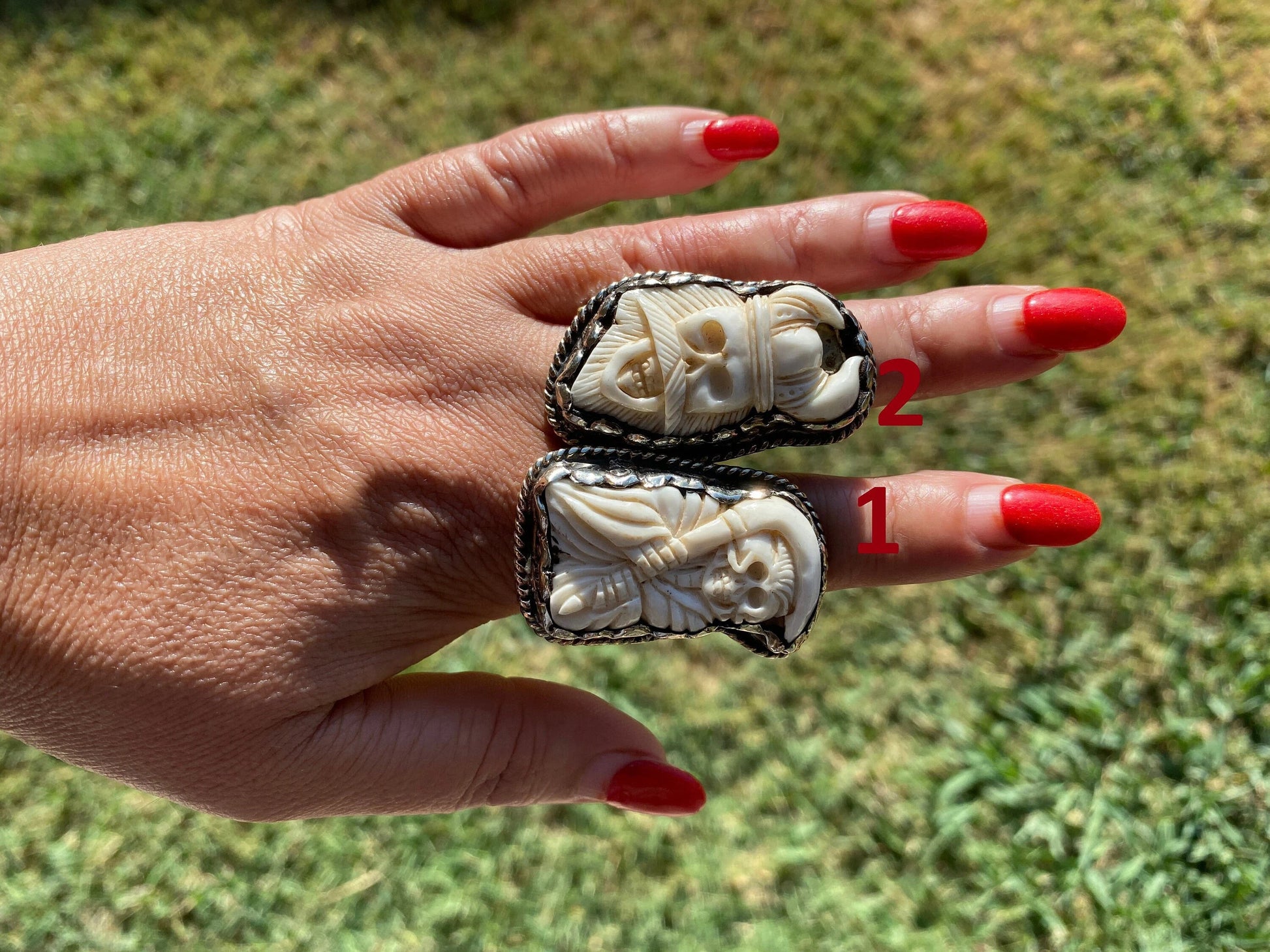 Big Adjustable Ring, Bone Carved Viking King Skull or Grim Reaper Tibetan Silver Ring, Statement Ring, Bohemian Ring, Unisex Jewelry Gift