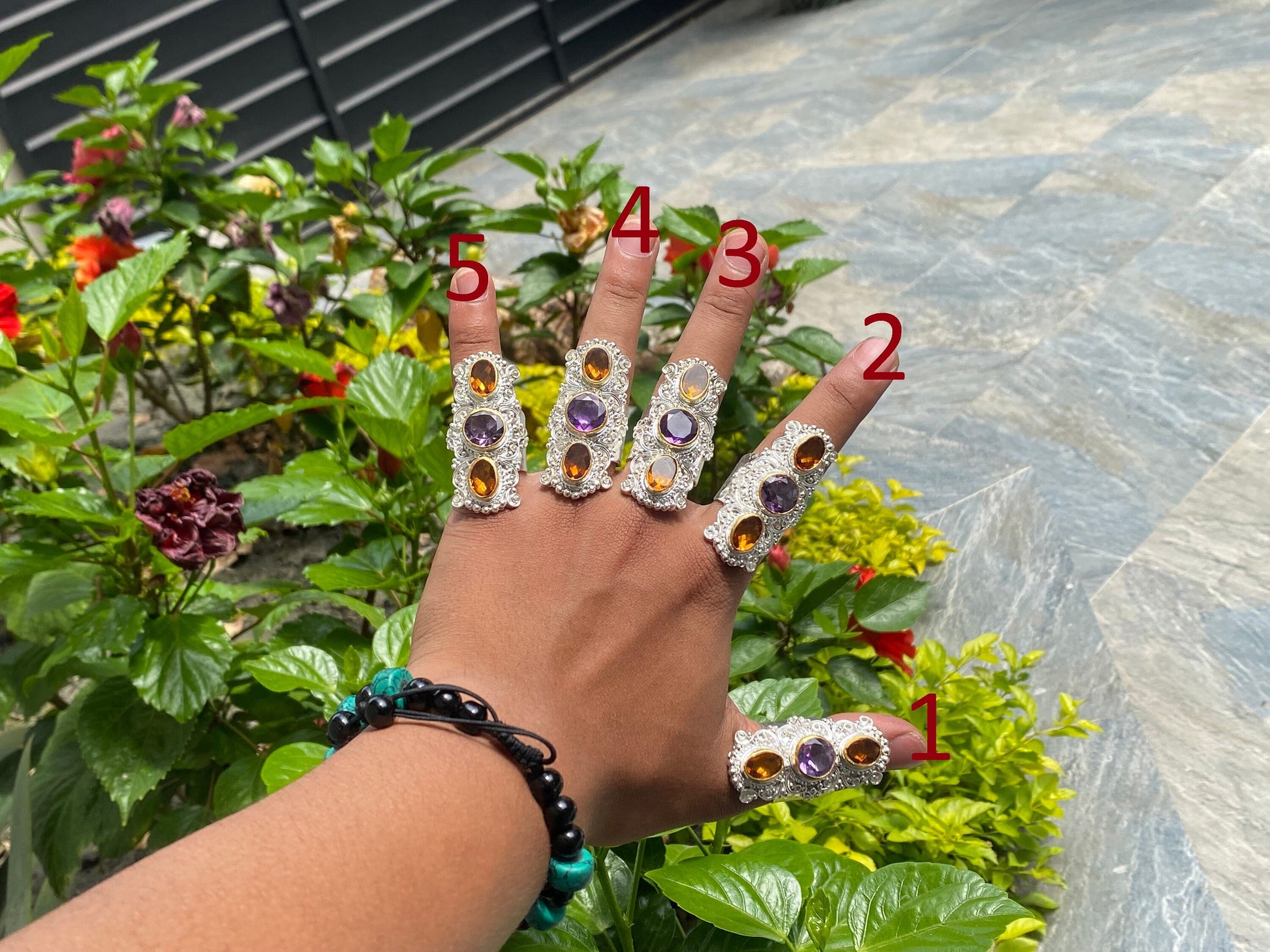 Ring Size: Adjustable (One size fits most) can size up or downStone: Natural Amethyst, Natural Citrine.Measurement: Ring: Approximately 51.00 mm X 17.00 mm ( From widest Side) , Weight: 24.00 gm,