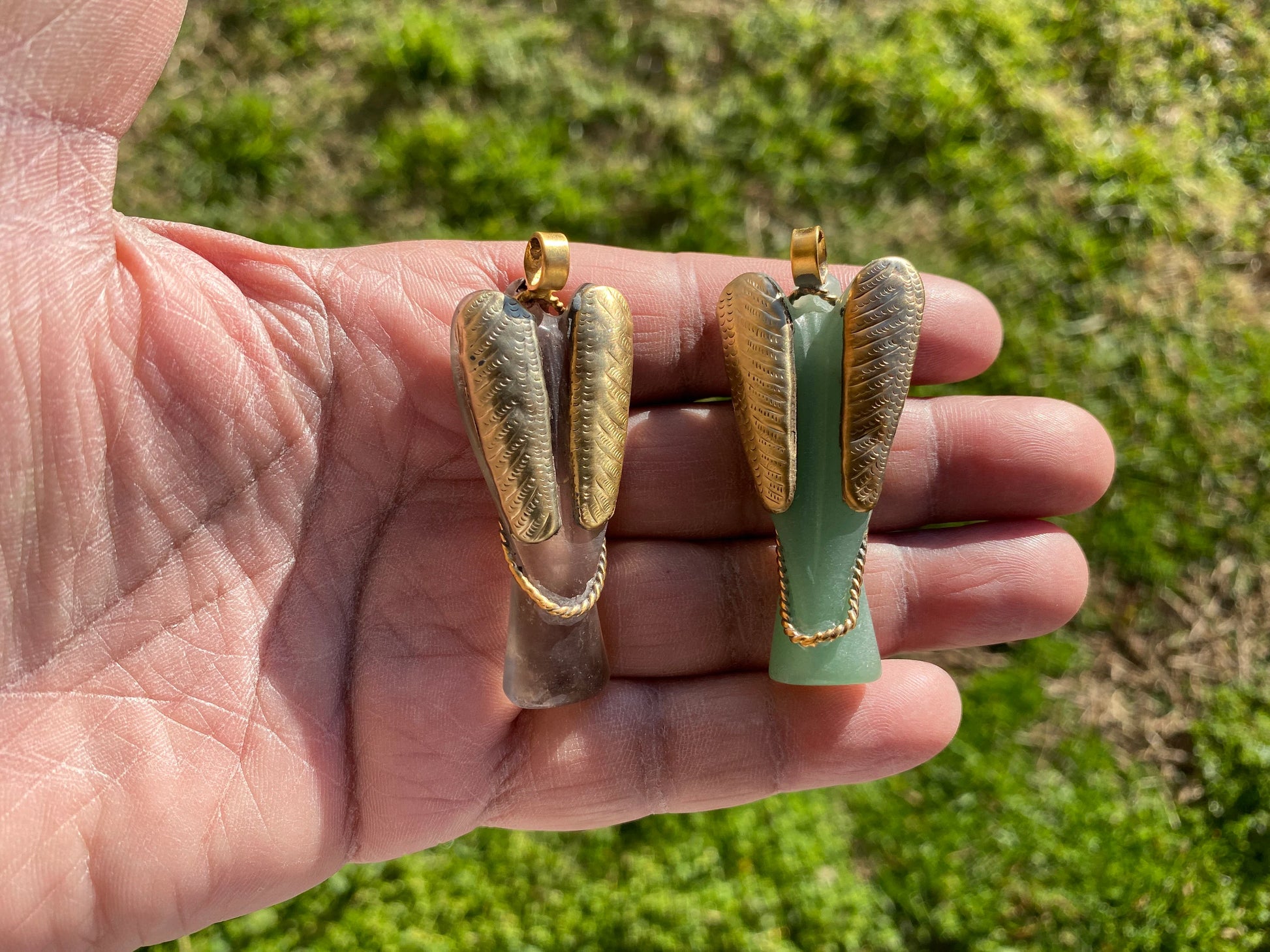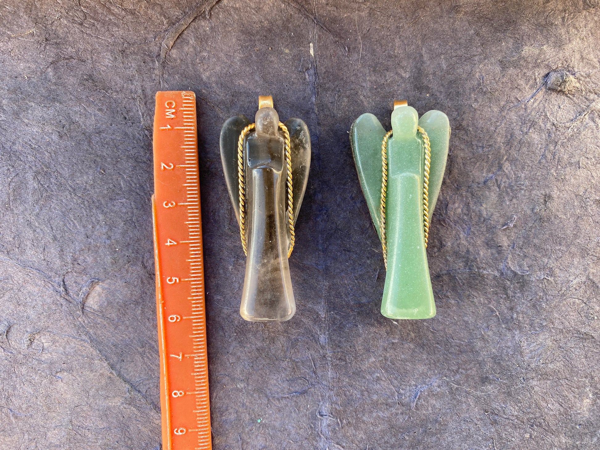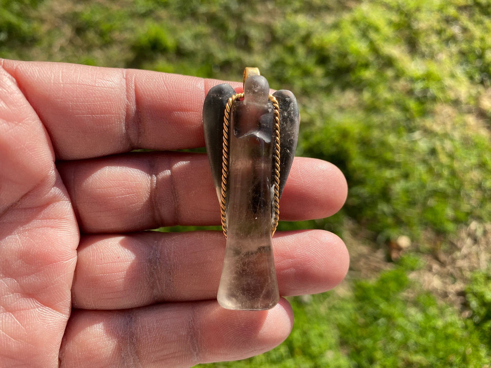 Carved Crystal Angel Pendant, Smoky Quartz or Aventurine Gemstone Angel, High Quality 18K Brushed Gold Overlay Non Tarnish, Crystal Jewelry