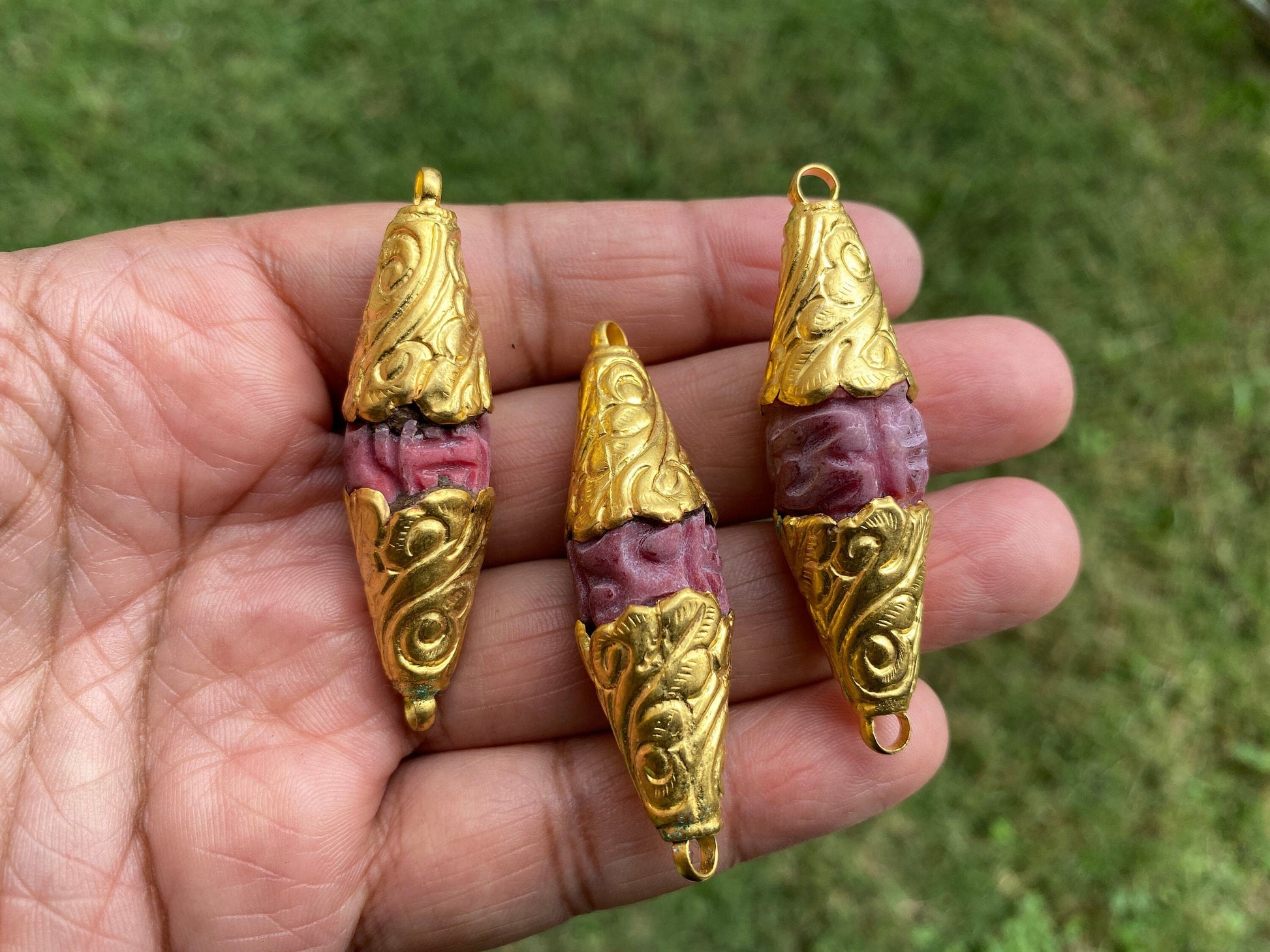 This listing is for 1 piece.At wholesale price!!!Measurement: approximately Length 55 mm ( measuring from bail to bail ), width 14 mm from the widest side, bail size: 4 mm and weighs about 10.1 gm.These beautiful high quality 18K Matt Gold Overlay over brass with anti-tarnish finish so that It will not tarnish. These Tibetan beads were handcrafted in Nepal. Hand-carved beads made with red carved coral. These Beads are sure to make an impact on your jewelry project. These beads would be a great addition to your necklace or bracelet project. These beads would look great strung on beaded necklace or Mala.Please note: you will receive a random beadDisclaimer: Items are handmade so please note: Each item is unique may have some small imperfections. There can be a slight difference in actual color than shown in picture.Images may appear enlarged or smaller. Please refer to the measurements given. ✤ Keep in mind:1. Product VarianceAs the jewelry is handmade in nature, the items may experience variance in texture, shape, color, and finish. This also comes with some imperfections, which sets them apart from jewelry made in a factory – that being said please read the description thoroughly and view the pictures before you make your final purchase. As always, please don’t hesitate to ask us if you have any questions as we are more than happy to provide you with utmost quality assurance. 2. Photography & ColorsDue to the fact that we photograph each of our items, some items may seem larger than the actual size and the colors may seem off as well, please make sure to read the dimensions in order to avoid problems that can be easily taken care of. We do our best to photograph the items with as much detail as possible, however, images can deceive the eye, again – feel free to reach us with any questions or concerns!3. LiabilityDiscover Designs Inc. shall not be held responsible for any injuries, damages, or losses resulting from the use of products purchased from our shop. Therefore, by purchasing from our Etsy Store, you the costumer agree that all purchases and uses of products are responsibilities of the buyer. With that said, Discover Designs will not be held responsible for the use, misuse, or mishandling of any items and buyers assume all liabilities for the products they have purchased. The purchase of an item from Discover Designs demonstrates acceptance of this disclosure and releases Discover Designs and its affiliates from liabilities arising thereof. ✪Not a toy, not intended for use by, or in products intended for children 14 or under. May be harmful if swallowed.Thanks for stopping by!