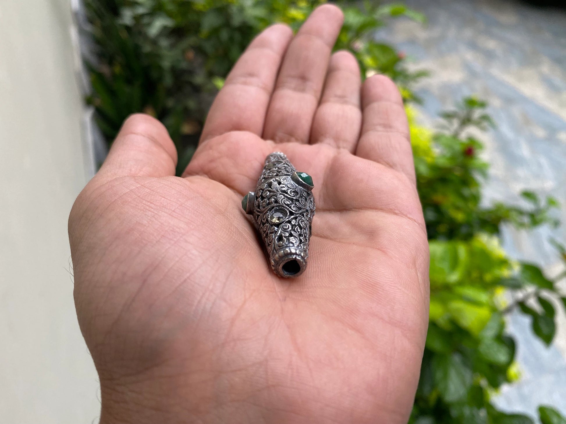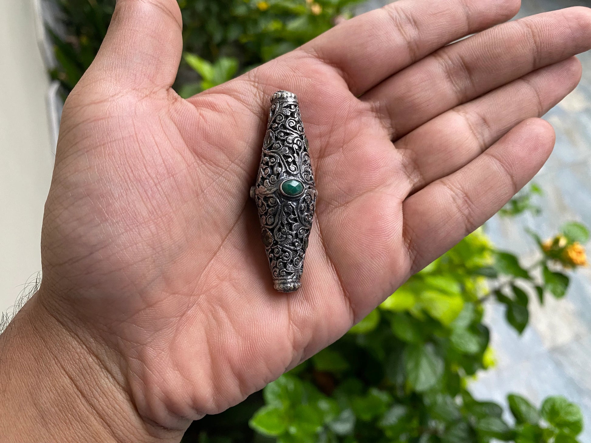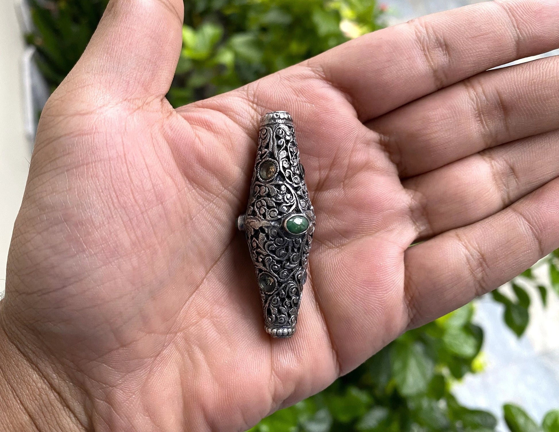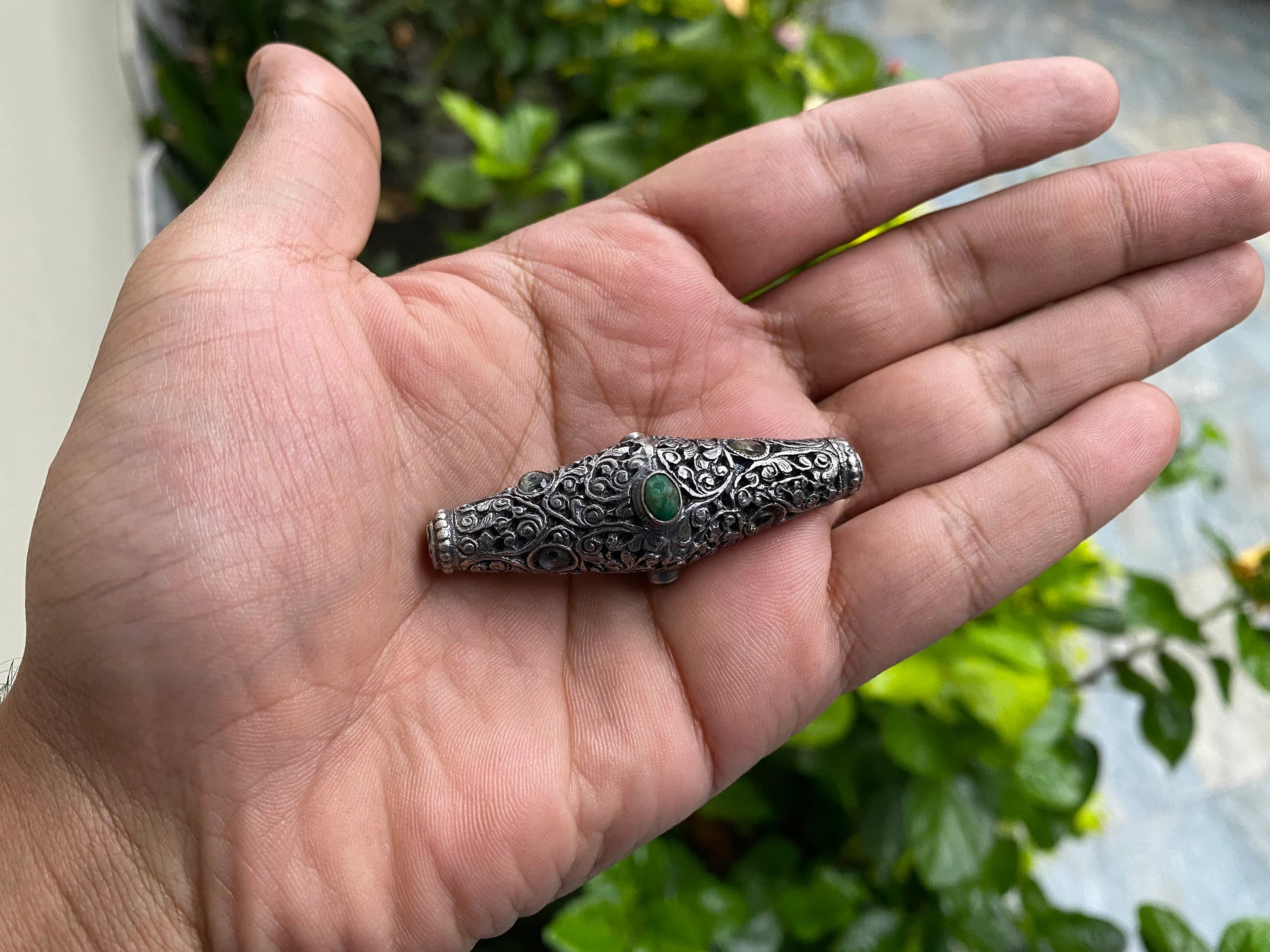 Copper Tibetan Beads with Peridot and Emerald Inlay | Himalayan Mala Guru Beads,Ethnic Hill Tribe Beads for Necklace,Bracelet,Jewelry Making