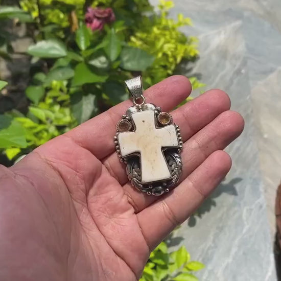 Our Cross bone pendants made with eco-friendly water buffalo bone and Tibetan silver from Nepal offer a unique blend of cultural significance and durability. Ideal for everyday wear and special occasions, these antique, hammered pendants make meaningful gifts. Their handcrafted quality and distinctive look embody the rich heritage of Tibetan silver jewelry.