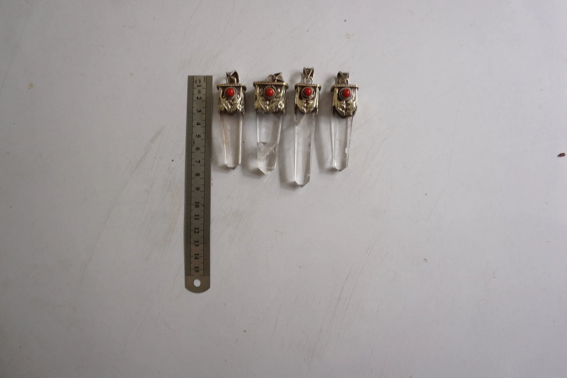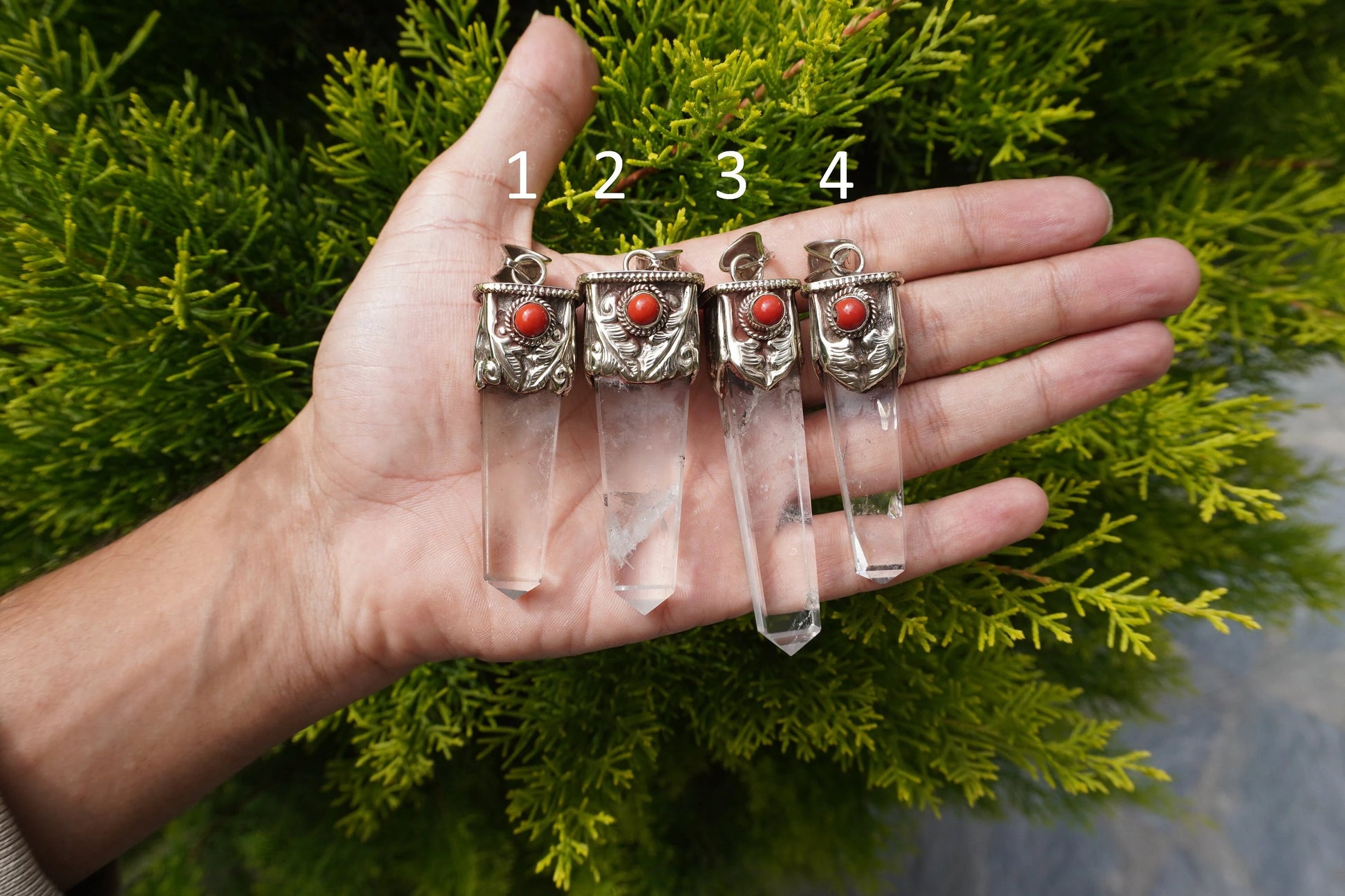 Crystal with Red Coral Tibetan Silver Pendant | Healing Pendant, Natural Gemstone, Unisex Pendant, Pointed Pendant, Handmade gift ideas