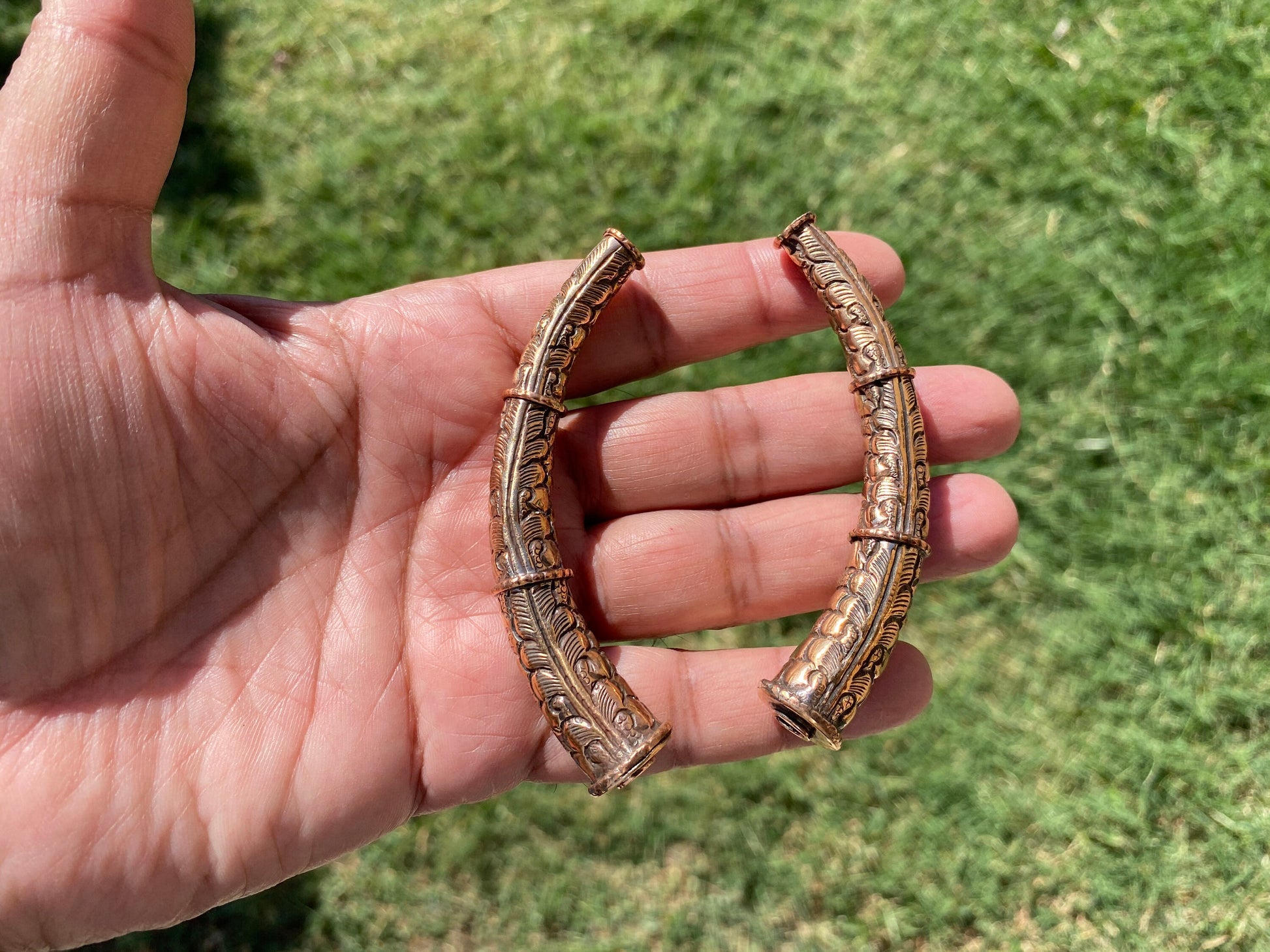 These beautiful high quality Tibetan Silver, 18K brushed Gold Overlay Over Brass or Copper Necklace Spacer, These Tibetan Tube Connector were handcrafted in Nepal. Hand-carved beads made with Brass. Great for jewelry making! It is a perfect gift for you or for someone you love.