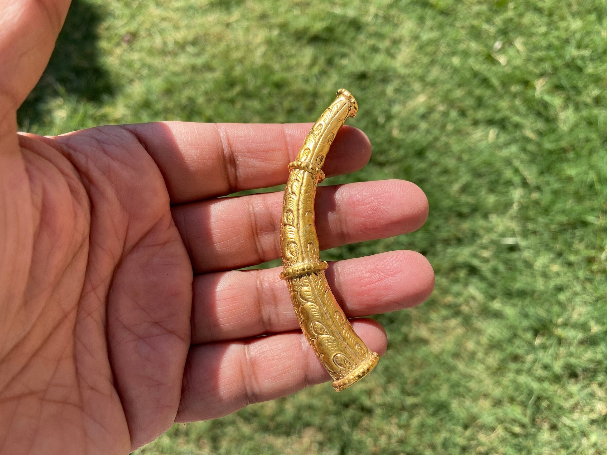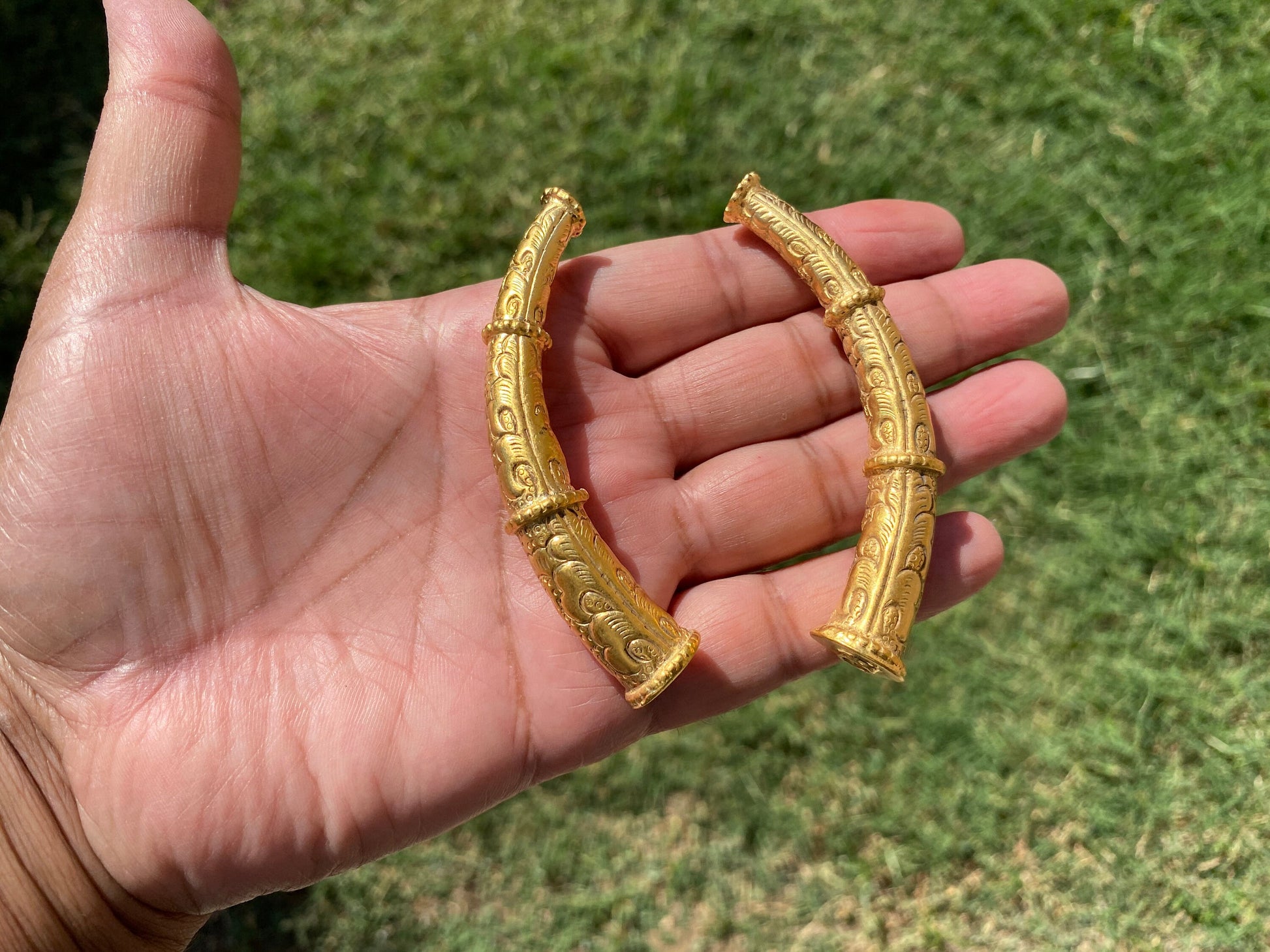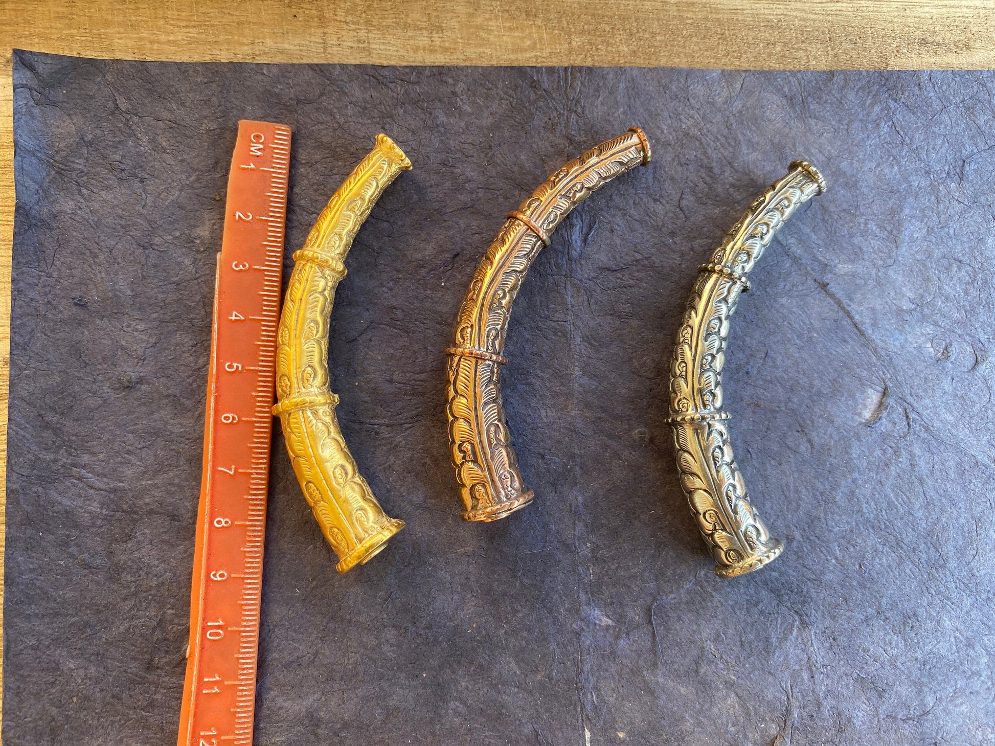 curved tube findings, long connector beads, matte gold connector, brass findings, jewelry making supplies, necklace connector, bar beads, handmade findings, ornate design connector, nepal jewelry, tribal jewelry, gold plated findings