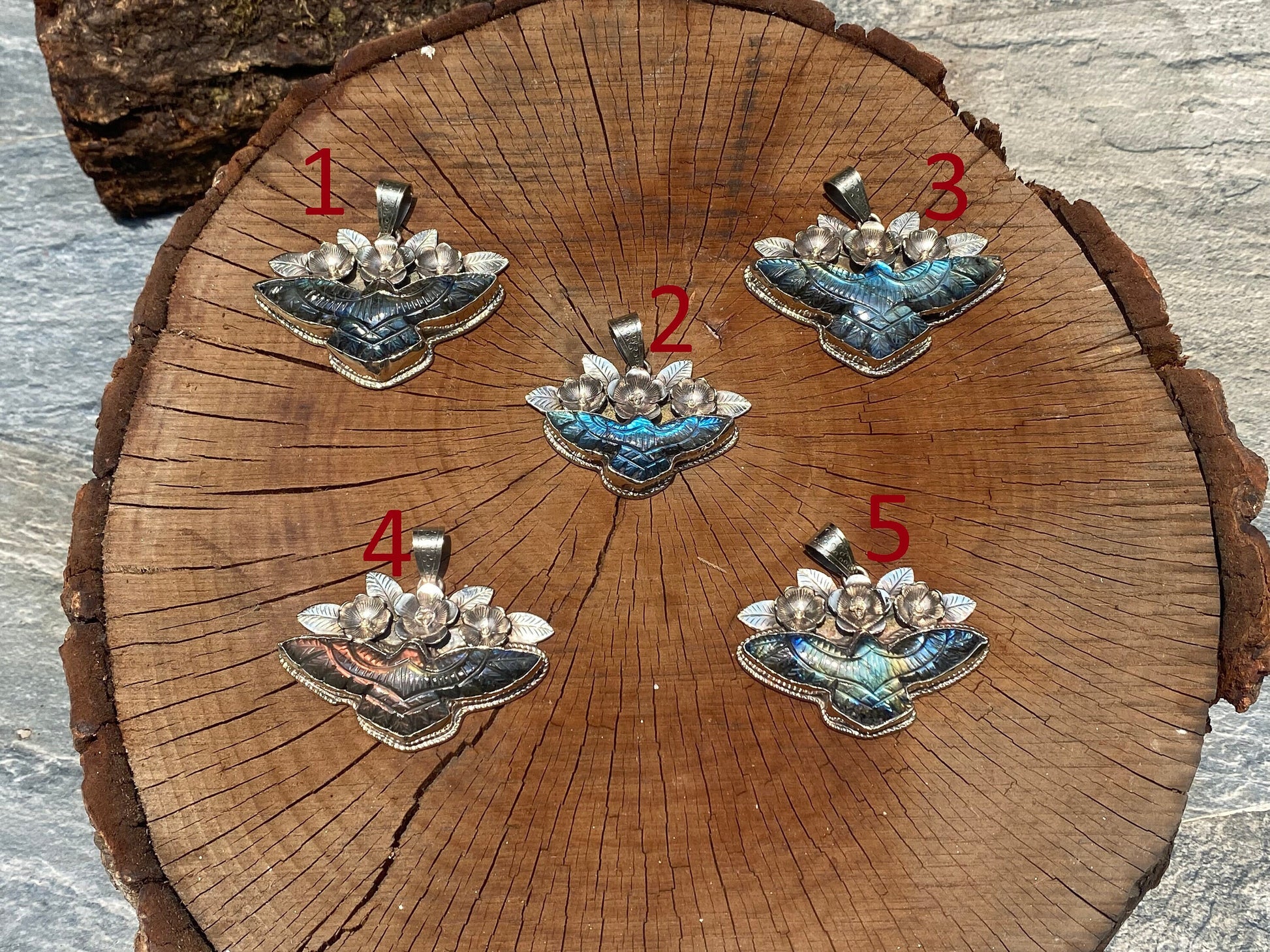 Eagle Shaped Natural Labradorite Pendant for Daily wear, Unique Labradorite Pendant, Healing pendant, Tibetan Silver Pendant, Floral design.