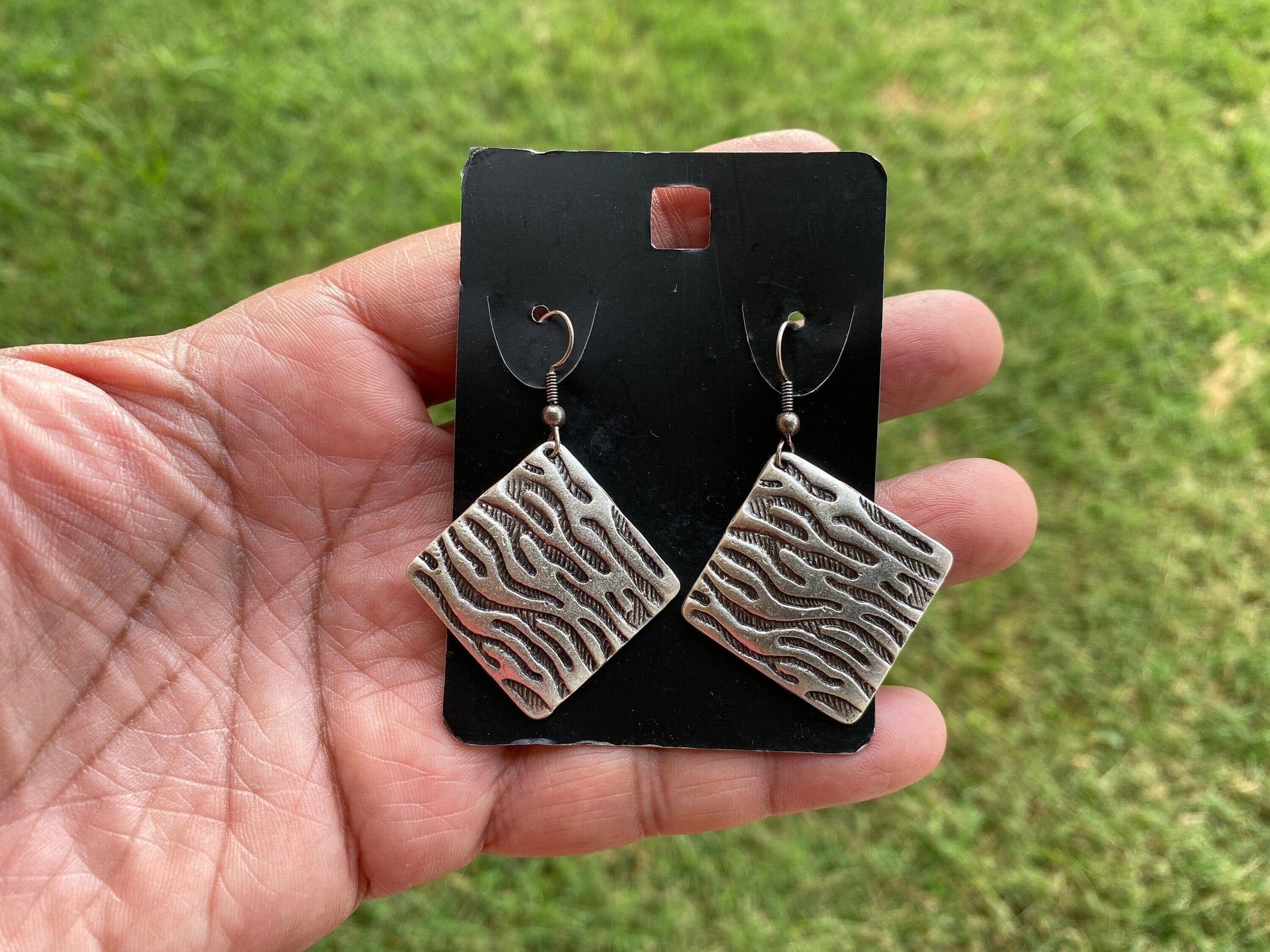 Matte Silver plated (Lead & Nickel Free) light weight dangle earrings. These earrings will be a great birthday, anniversary and holidays gift and can be worn on all occasions.