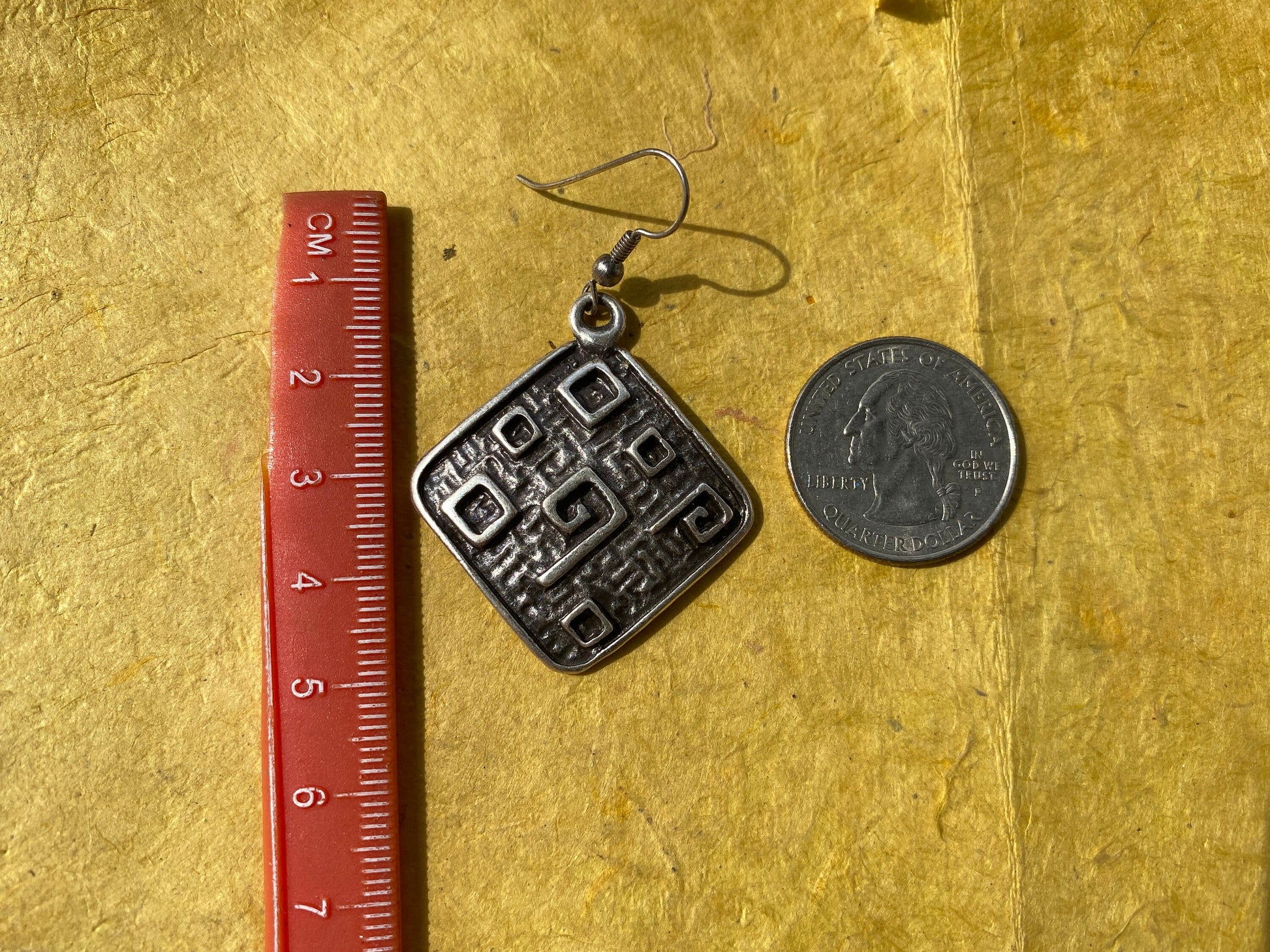 Egyptian Design Earrings, Matte Silver Plated Dangle Earrings, Ancient Gypsy Earring, Tribal Ethnic Earrings, Bridesmaid, Bridal Earrings