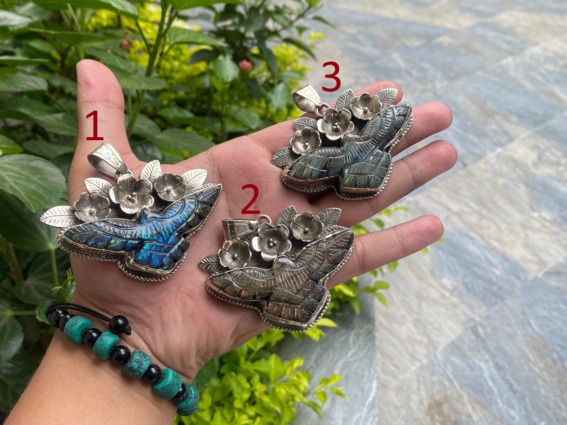 This elegant eagle-shaped labradorite pendant, perfect for daily wear, showcases exquisite craftsmanship. Handmade with a unique floral design, the pendant is both hammered and antique, adding a touch of vintage charm. Its unisex appeal makes it a versatile accessory for anyone. The labradorite stone's healing properties further enhance its allure, making it a standout piece in any jewelry collection.