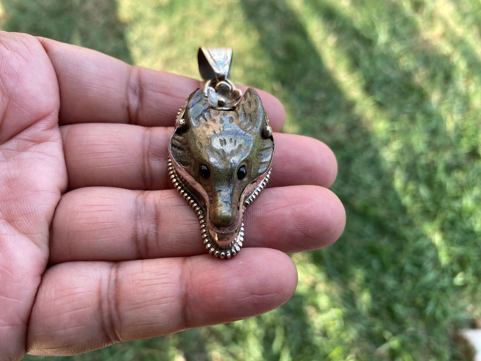 Fox Hand carved Jasper Tibetan Silver Pendant, Ethnic Jewelry, Jewelry Making, Necklace Pendant, Birthstone, Energy Stone Pendant