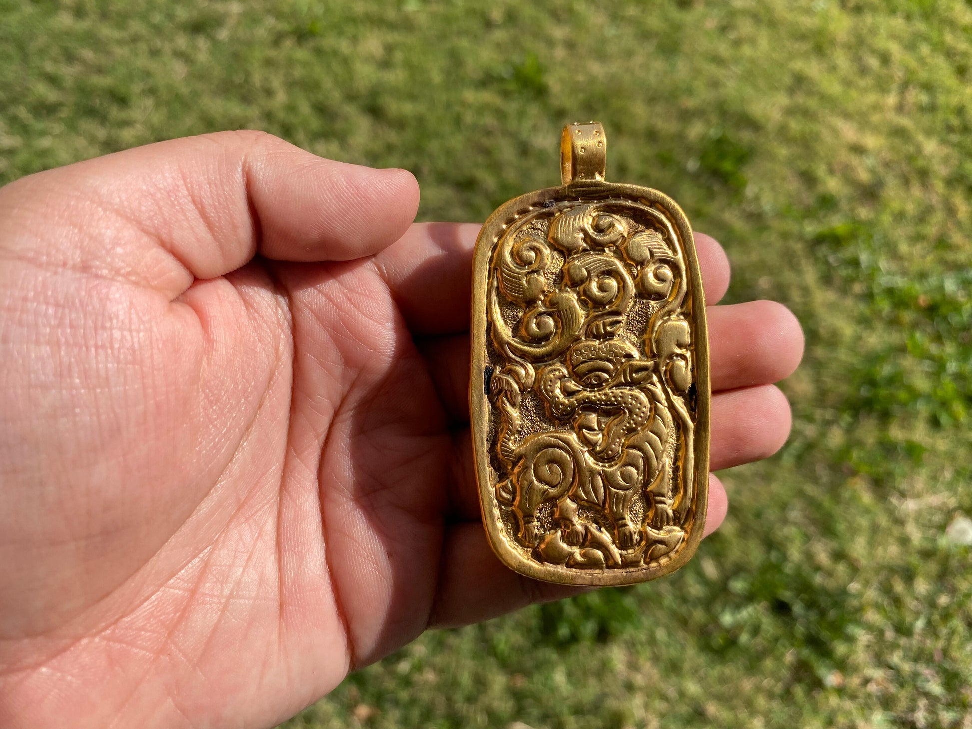 This listing is for 1 piece.At wholesale price!!! This Gorgeous Funny Hand carved pendants are made with Buffalo Bone and 18k Brushed Gold Overlay Over Brass. This Tibetan designs pendant is handmade in Nepal and adorned by a beautiful pendant which has a large hole...