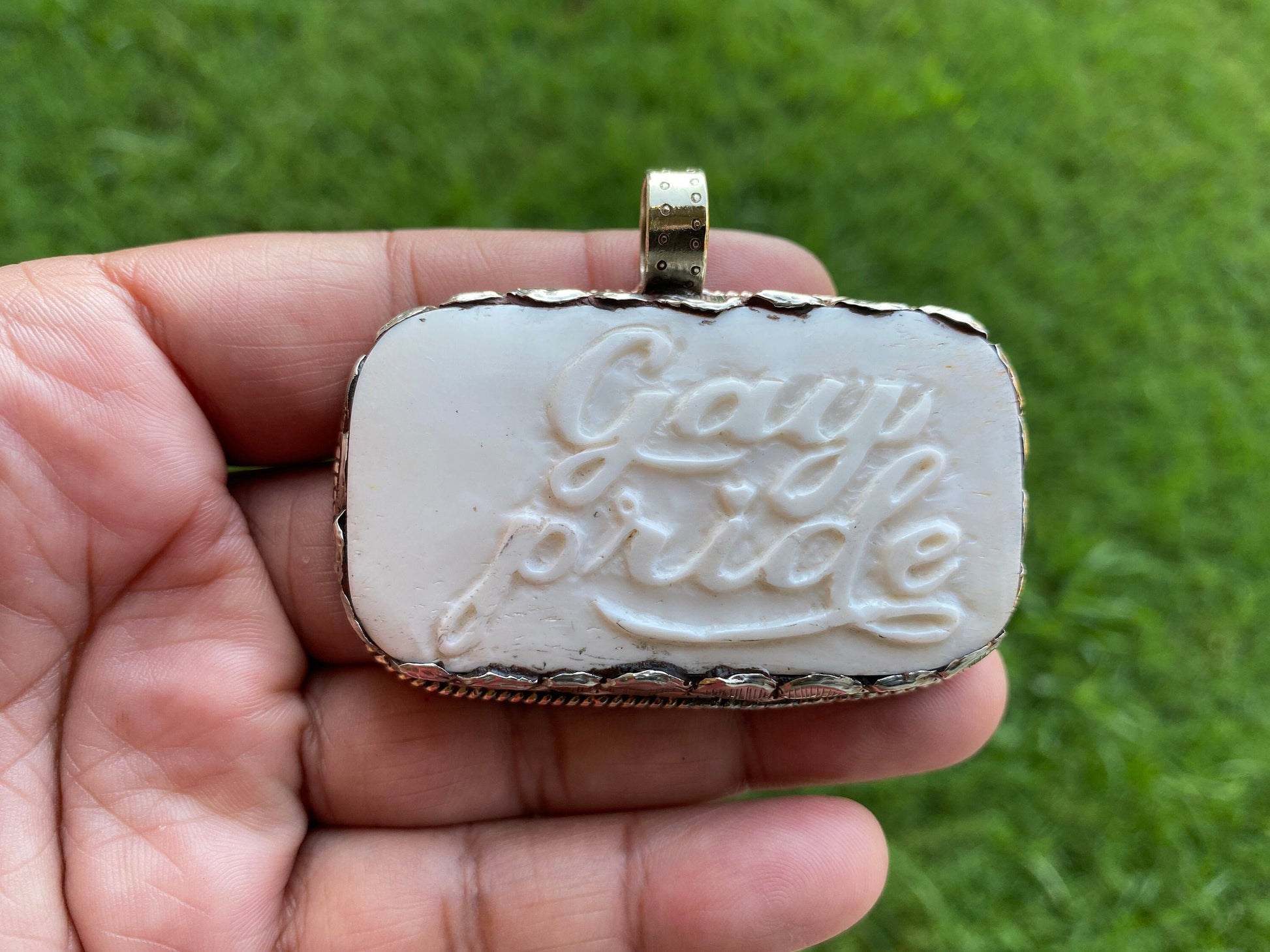 Gay Pride Bone Pendant, Made with Tibetan Silver, LGBT Pendant for Necklace, LGBT Pride Present, Support for Gay Community, LGBTQ Gifts