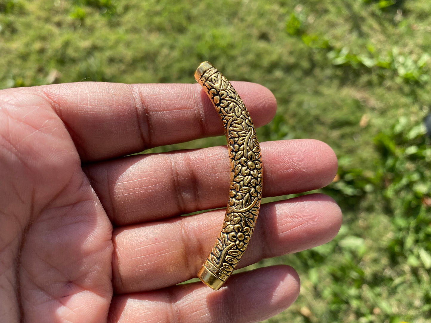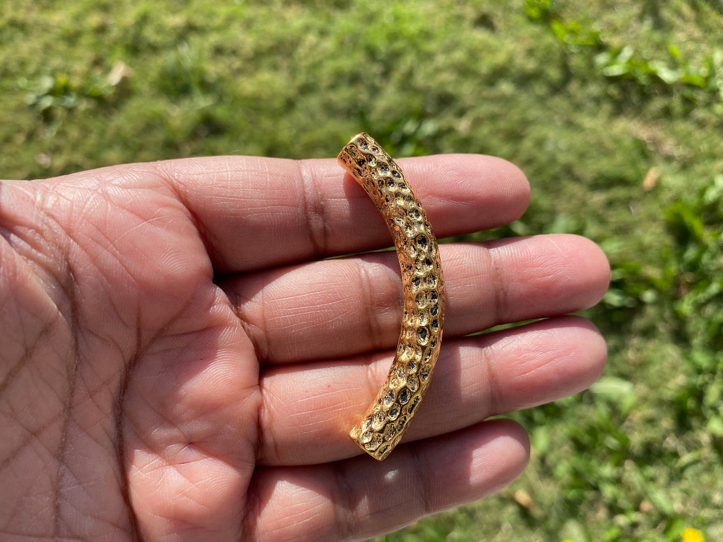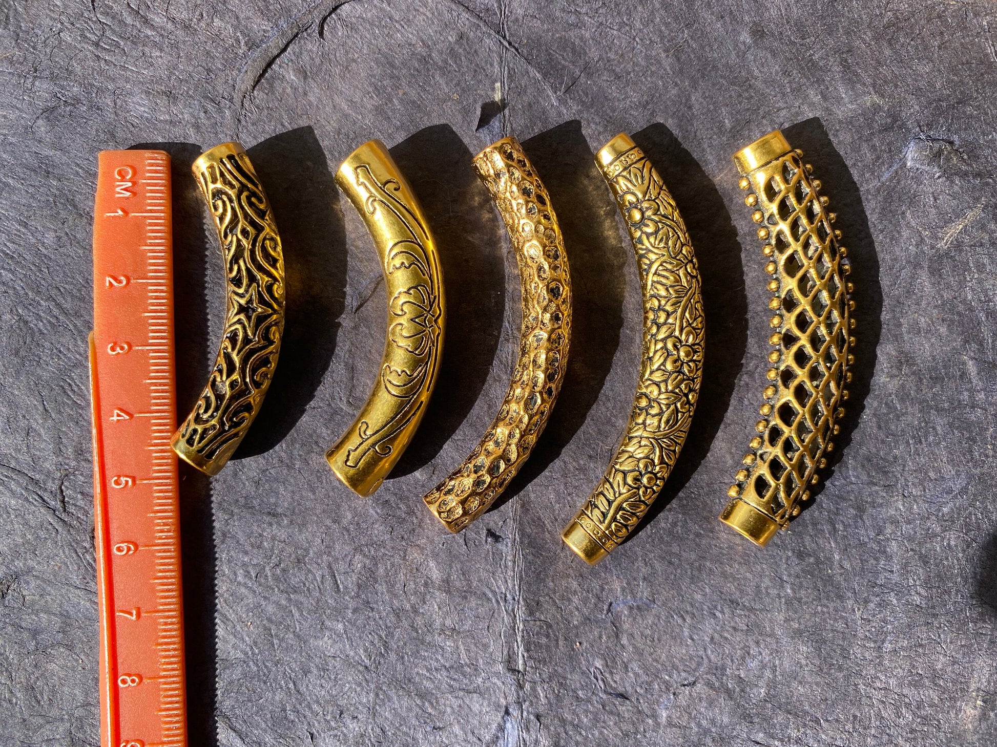 curved tube findings, long connector beads, matte gold connector, brass findings, jewelry making supplies, necklace connector, bar beads, handmade findings, ornate design connector, nepal jewelry, tribal jewelry, gold plated findings