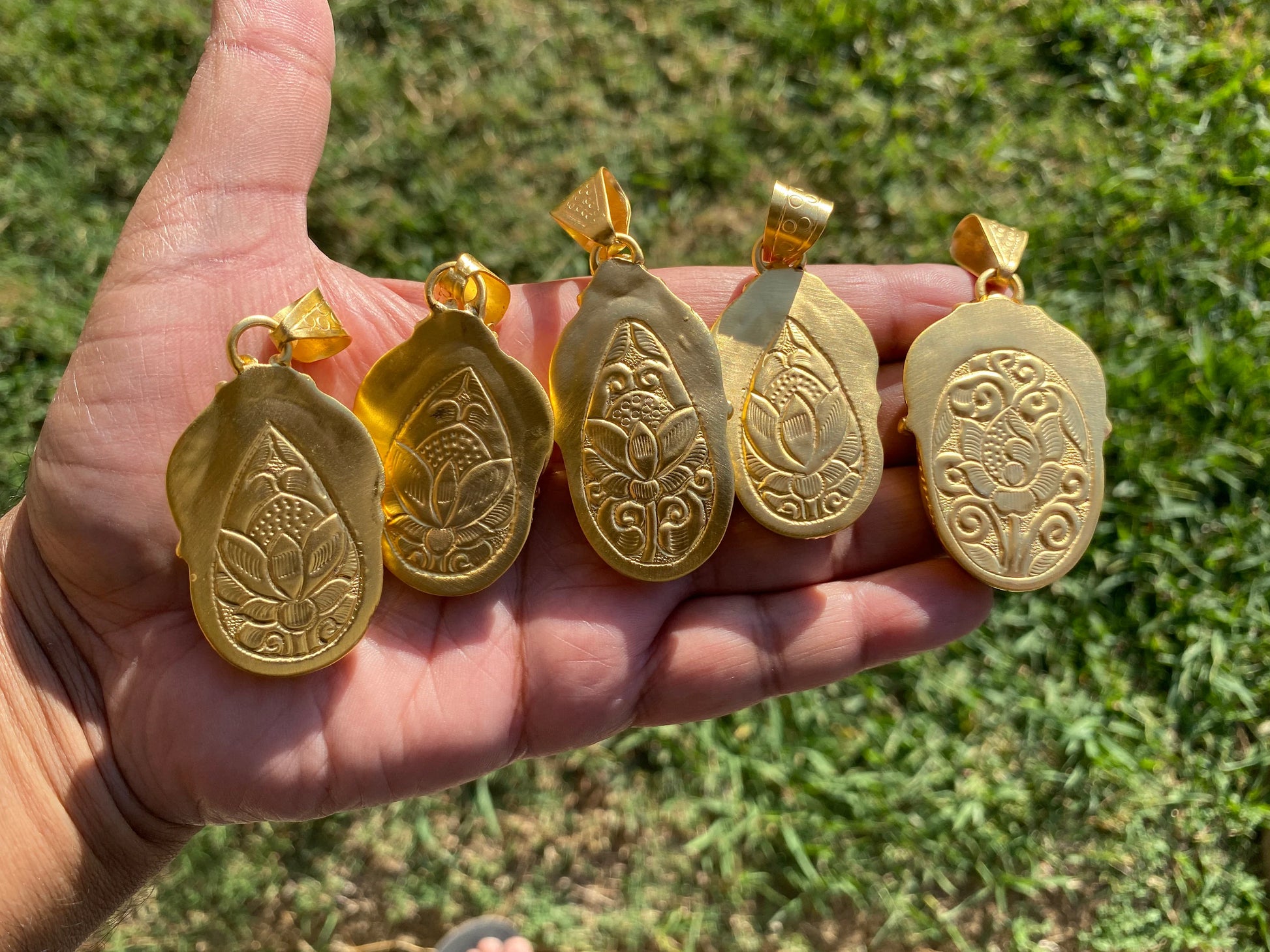 This one of a kind Large Tibetan Pendant made with 18K Matte Gold Overlay over Brass with Anti Tarnish Finish. Step into a world of enchantment with our Gold-Encased Labradorite Pendant. Handpicked for its mesmerizing play of colors, each labradorite stone dances with iridescent blues, greens, and golds, reminiscent of the ethereal Northern Lights. Encircled in a delicately crafted gold setting, this pendant not only offers the mysterious allure of labradorite but also the timeless elegance of gold. Worn close to the heart, it's more than just a piece of jewelry; it's a journey to nature's most captivating phenomena, captured and transformed into a keepsake of enduring beauty. Whether you're dressing up for a special occasion or simply adding a touch of magic to your everyday ensemble, this pendant promises to be a conversation starter.✤ Keep in mind:1. Product VarianceAs the jewelry is handmade in nature, the items may experience variance in texture, shape, color, and finish. This also comes with some imperfections, which sets them apart from jewelry made in a factory – that being said please read the description thoroughly and view the pictures before you make your final purchase. As always, please don’t hesitate to ask us if you have any questions as we are more than happy to provide you with utmost quality assurance.