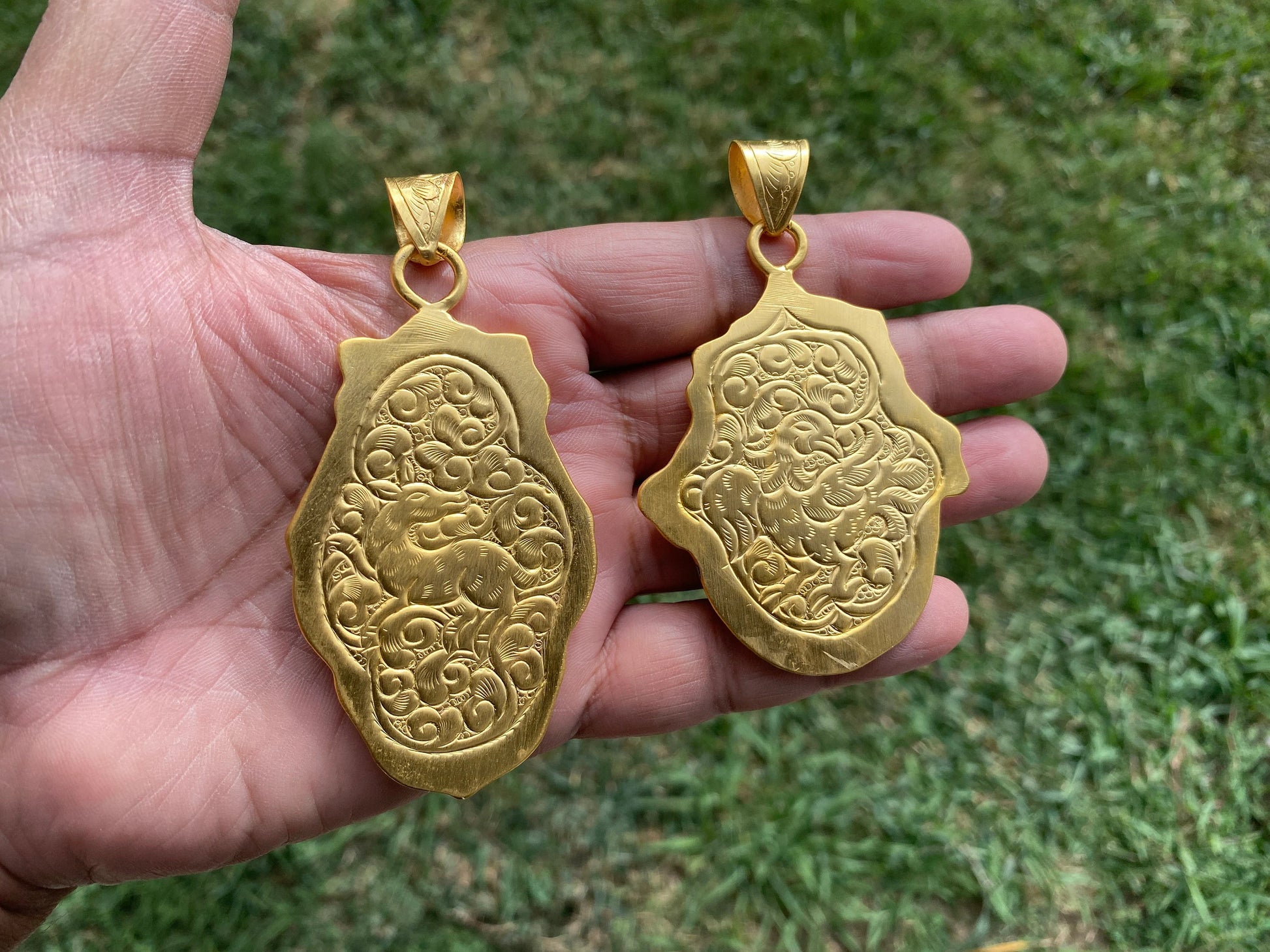 This listing is for 1 piece.At wholesale price!!!Measurement: Left Pendant: approximately Length 90 mm (measuring from bail to bottom), width 45 mm from the widest side, bail size: 10 mm and weight about 20.70 gm.Right Pendant: approximately Length 85 mm (measuring from bail to bottom), width 50 mm from the widest side, bail size: 10 mm and weight about 22.20 gm.