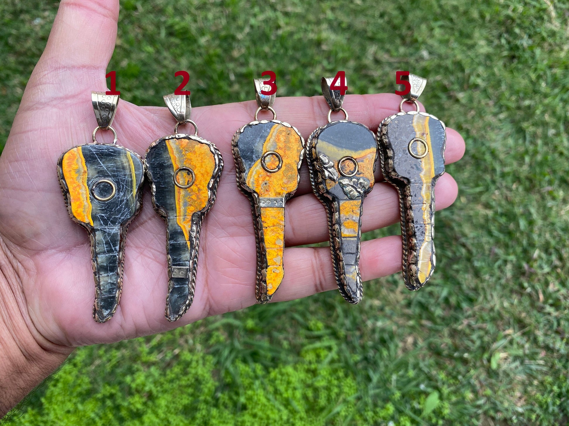 Adorn yourself with this distinctive pendant that not only showcases the earth's colorful marvels but also pays homage to the world of music. The Bumblebee Jasper's honeycomb-like patterns add an extra layer of depth and intrigue to this already captivating accessory.