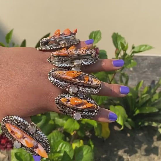 This listing is for 1 piece.Ring Size: Adjustable (One size fits most) can size up or downStone: Natural Orange Spiny OysterMeasurement: Approximately 64 mm X 30 mm ( From widest Side) , Weight: 37.00 gm