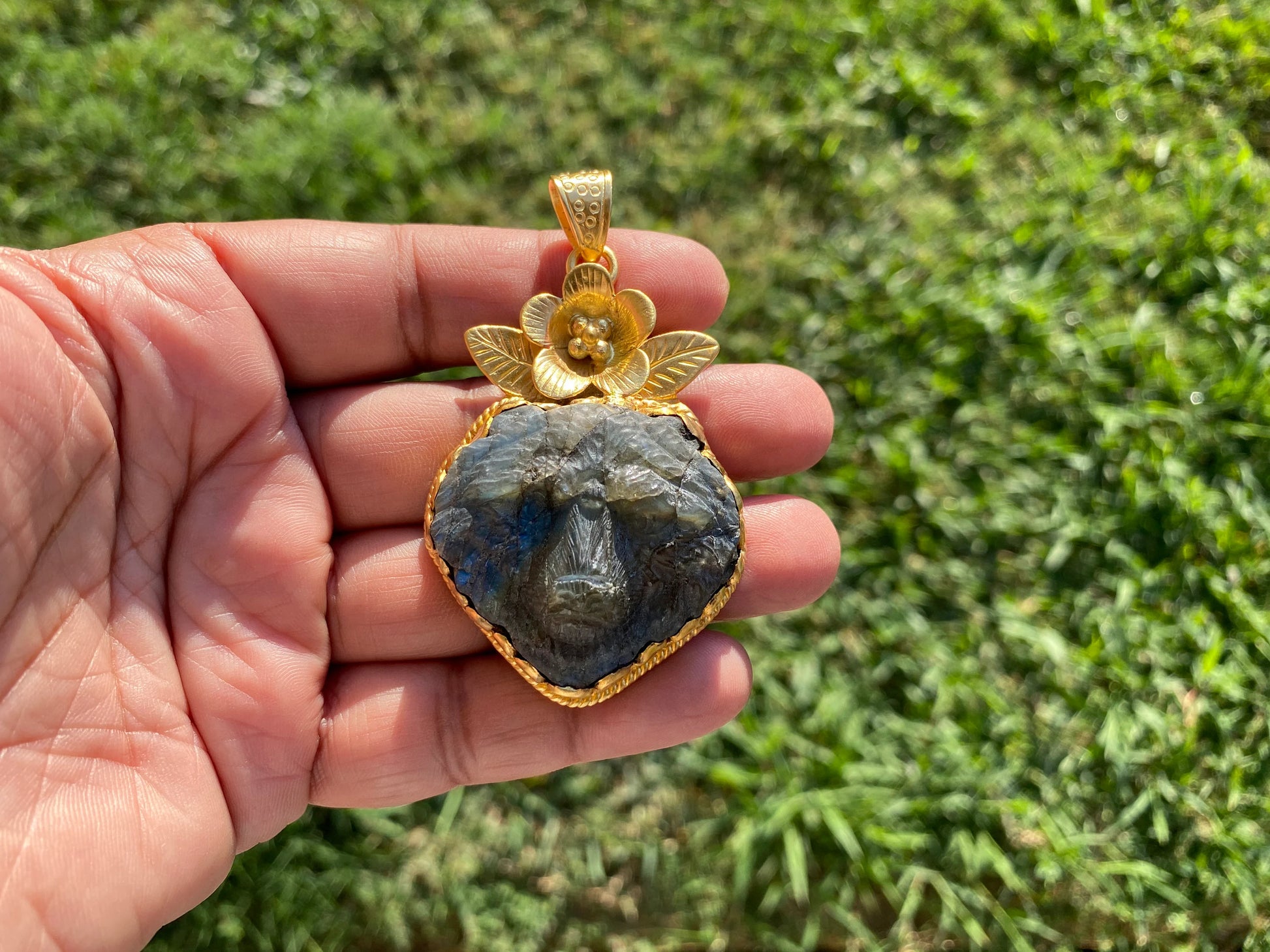 Hand Carved Bear Labradorite Gold Overlay Pendant, Bear Head Pendant, Animal Pendant, Wild life Inspired, Unique Craftsmanship, Nature Motif