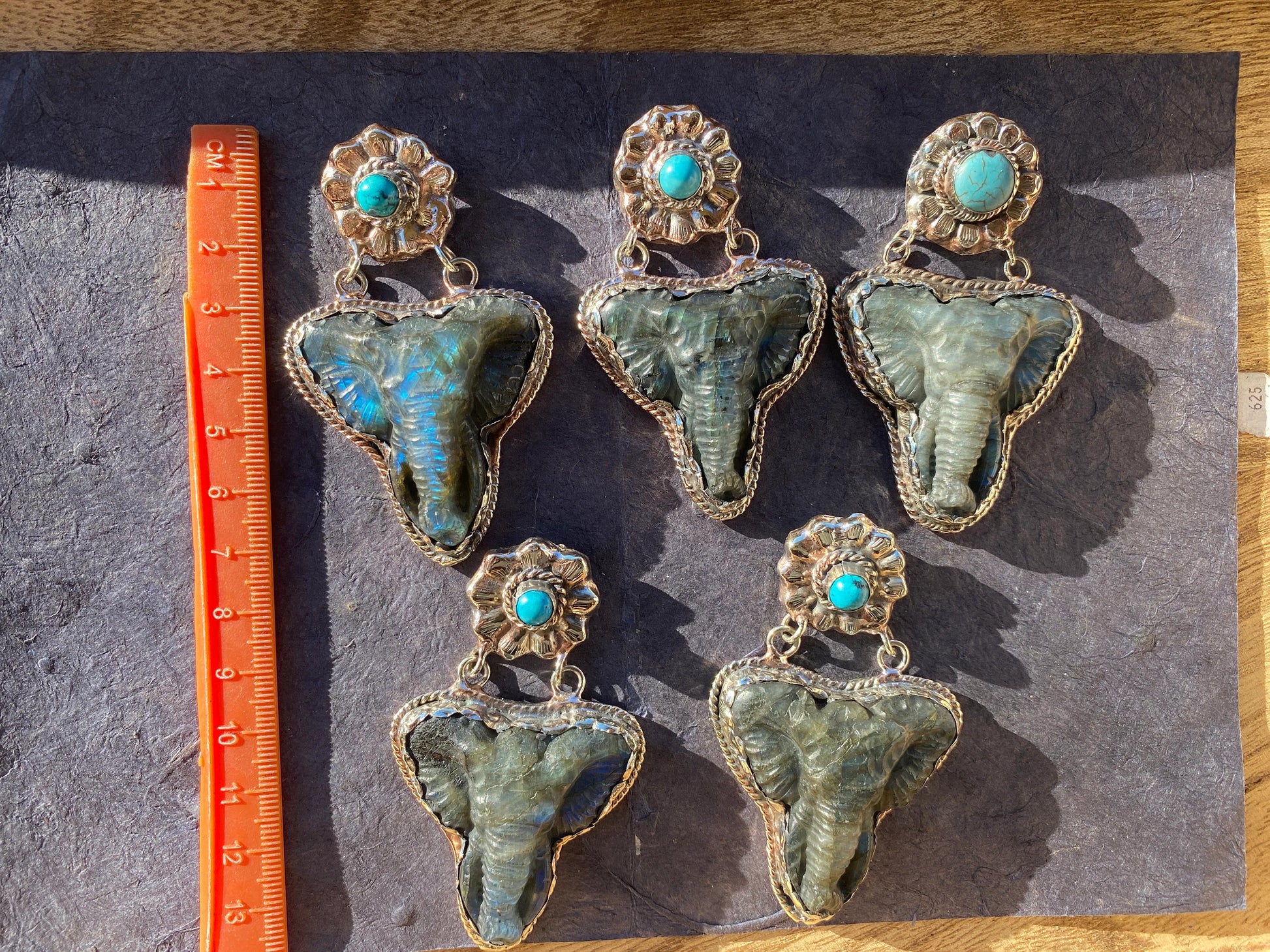 This listing is for 1 piece.At wholesale price!!! Made with Tibetan Silver with Hand Carved Elephant Head Labradorite stone. Beautiful hand carved on the back. These are sure to make an impact on your jewelry project. This pendant would be a great addition to your...