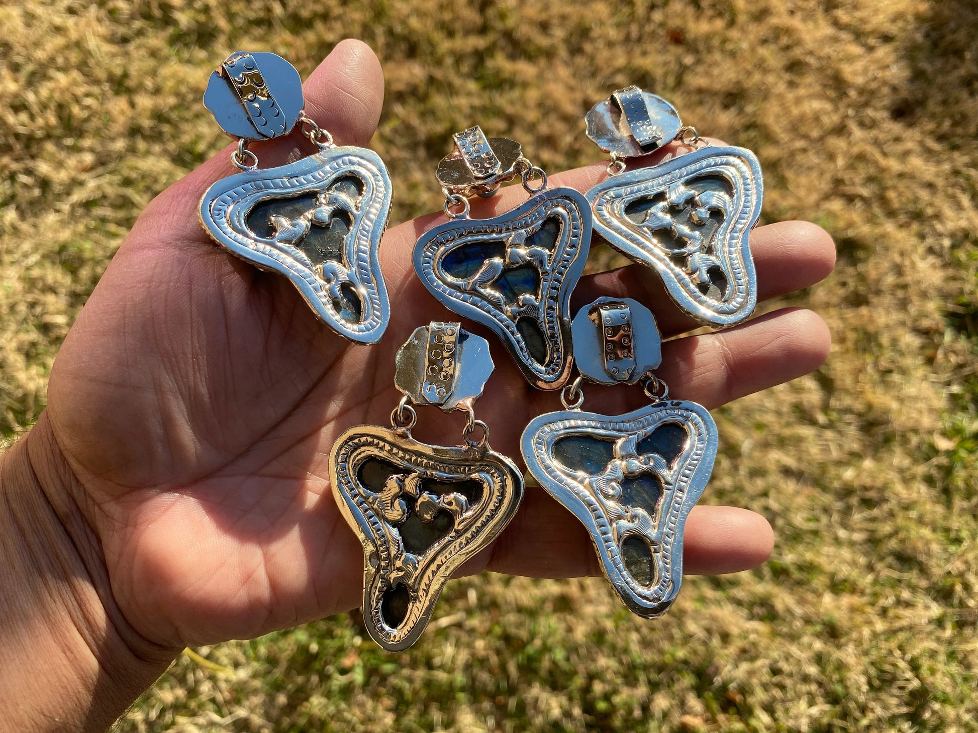 Made with Tibetan Silver with Hand Carved Elephant Head Labradorite stone. Beautiful hand carved on the back. These are sure to make an impact on your jewelry project. This pendant would be a great addition to your necklace, would look great strung on beaded Necklace, Chain or Mala.Beauty and magic of this pendant that is unmatched as they are handmade and are one of a kind. With the nature of them being handmade, each product is unique in its own right and no two products are the exact same. Clip BailMeasurement: approximately Length 75 mm (measuring from bail to bottom), width 45 mm from the widest side, Clip bail size: 6 mm and weighs about 34.20 gm.DD: 0350Disclaimer: Items are handmade so please note: Each item is unique may have some small imperfections. There can be a slight difference in actual color than shown in picture.Images may appear enlarged or smaller. Please refer to the measurements given. ✤ Keep in mind:1. Product VarianceAs the jewelry is handmade in nature, the items may experience variance in texture, shape, color, and finish. This also comes with some imperfections, which sets them apart from jewelry made in a factory – that being said please read the description thoroughly and view the pictures before you make your final purchase. As always, please don’t hesitate to ask us if you have any questions as we are more than happy to provide you with utmost quality assurance.