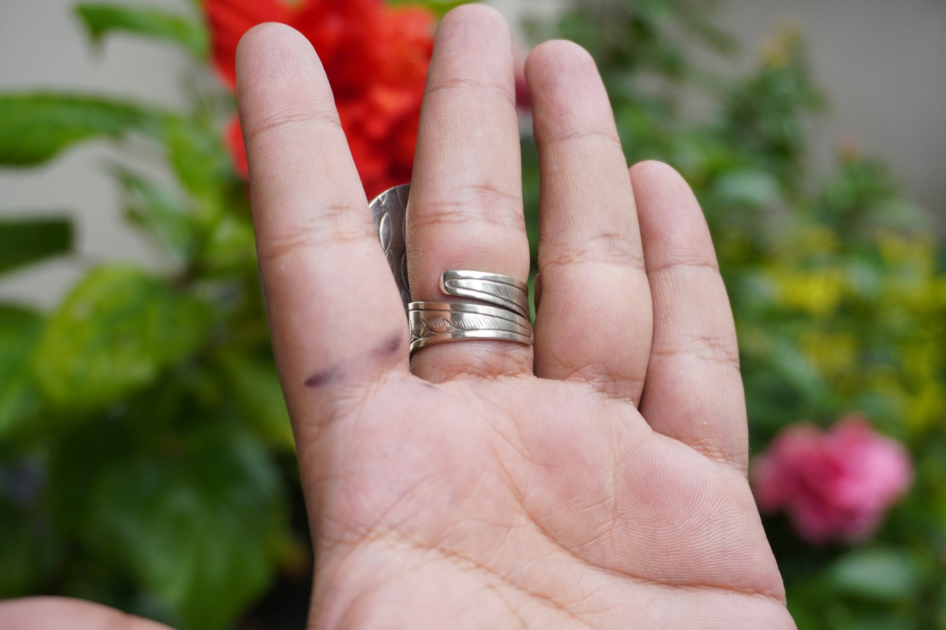 This is an elephant-designed ring, hand-carved on buffalo bone and set in Tibetan silver. Artisans from Nepal have made this ring, adding a unique touch to its design. It has a hammered texture, is made from natural buffalo bone and Tibetan silver, and is perfect for daily wear and unisex. Detailed craftsmanship makes it an outstanding piece for anyone into handmade, nature-inspired jewelry.