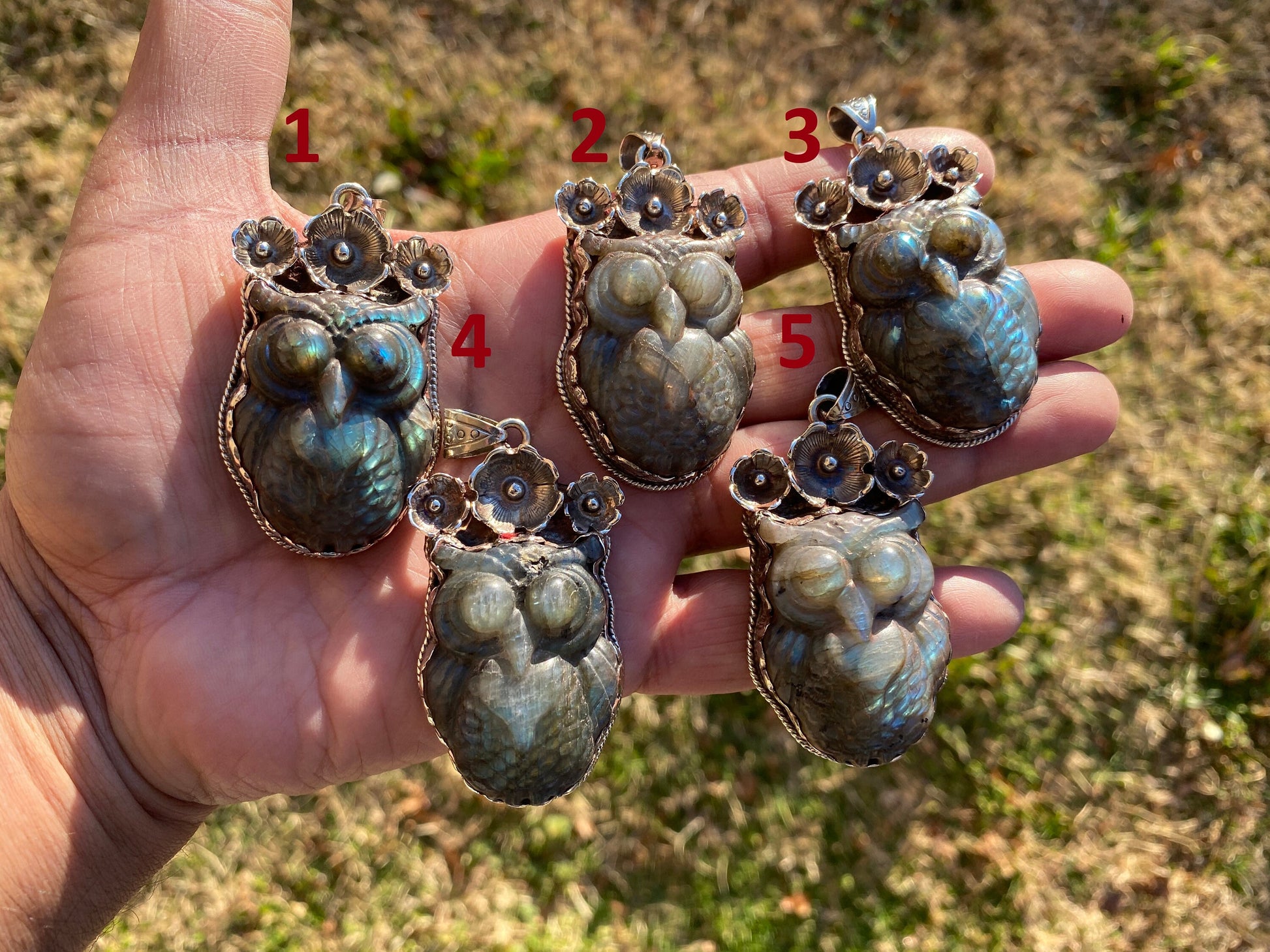 Hand Carved Owl Labradorite Tibetan Silver Pendant, Owl Pendant, Labradorite Owl, Blue Labradorite, Wildlife Jewelry, Animal Lover's Pendant