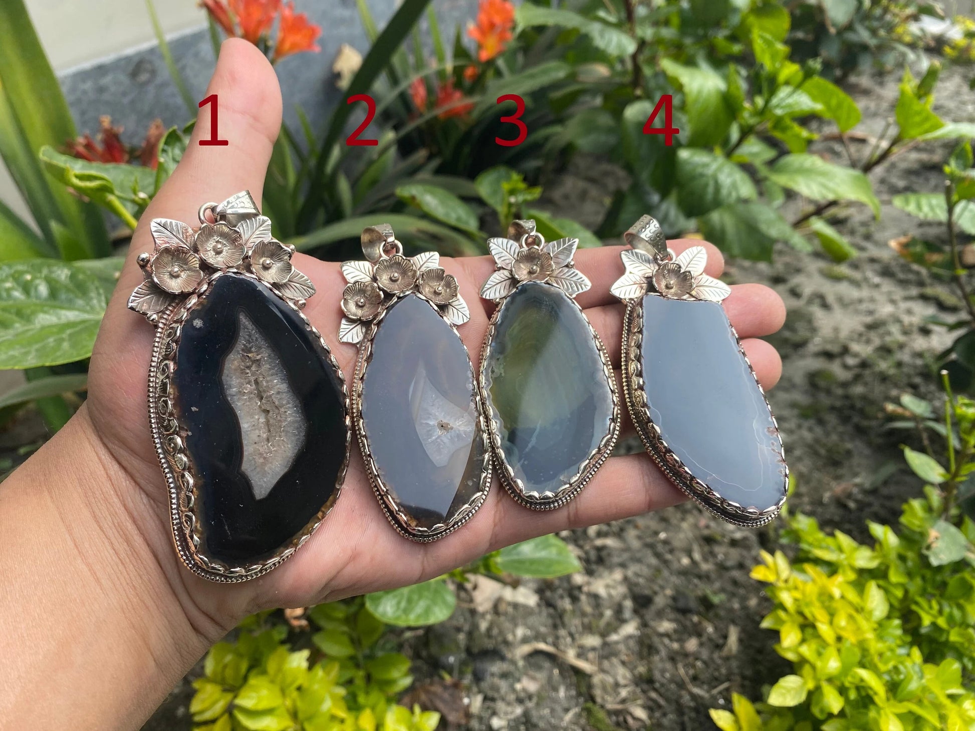 "Built by Nature" combines the fine technique of Tibetan silversmithing with the beauty of Earth's agate slices. The colorful agate patterns on each pendant are a tribute to the natural treasures of nature. The refined look of the agate is enhanced by the delicate Tibetan silver setting, resulting in a delightful combination of sparkling brilliance and natural charm. This work of wearable art is a lasting and treasured addition to any jewelry collection because it honors the beauty of nature and the expertise of the artisans.