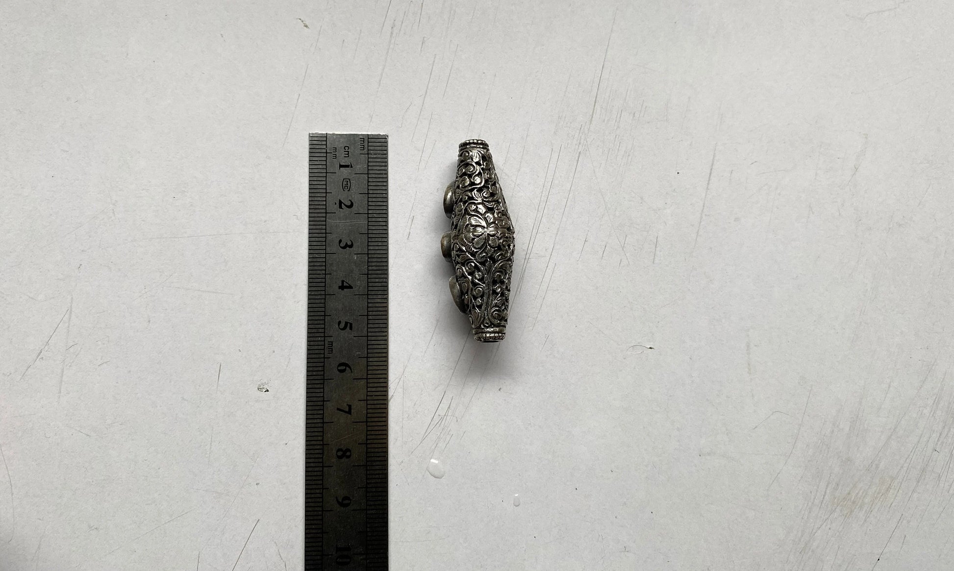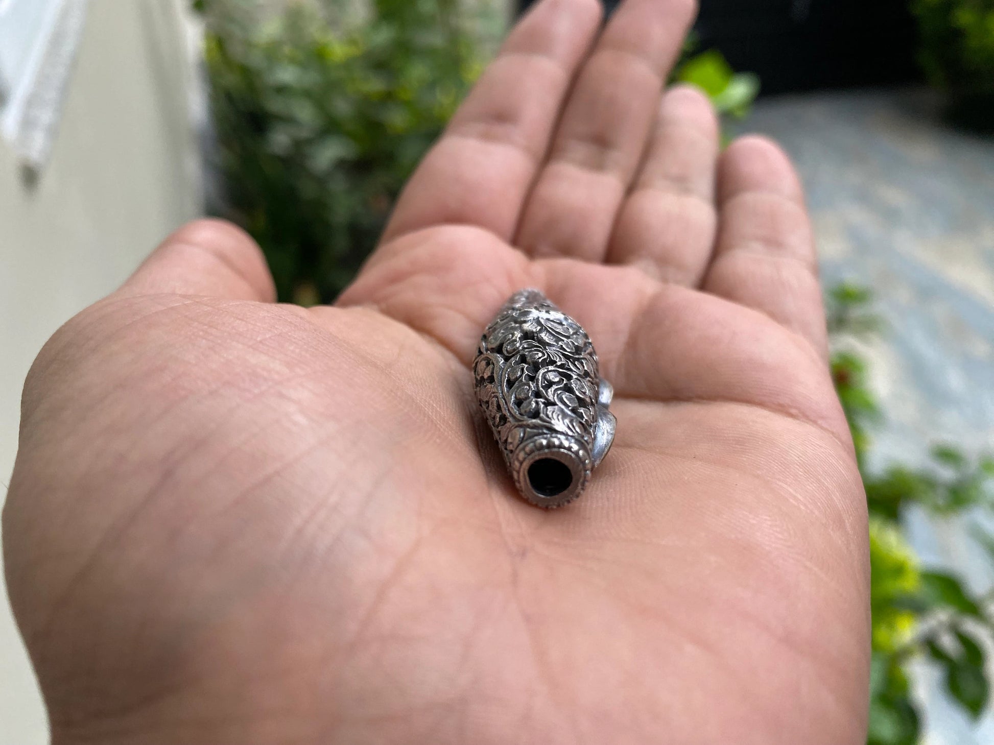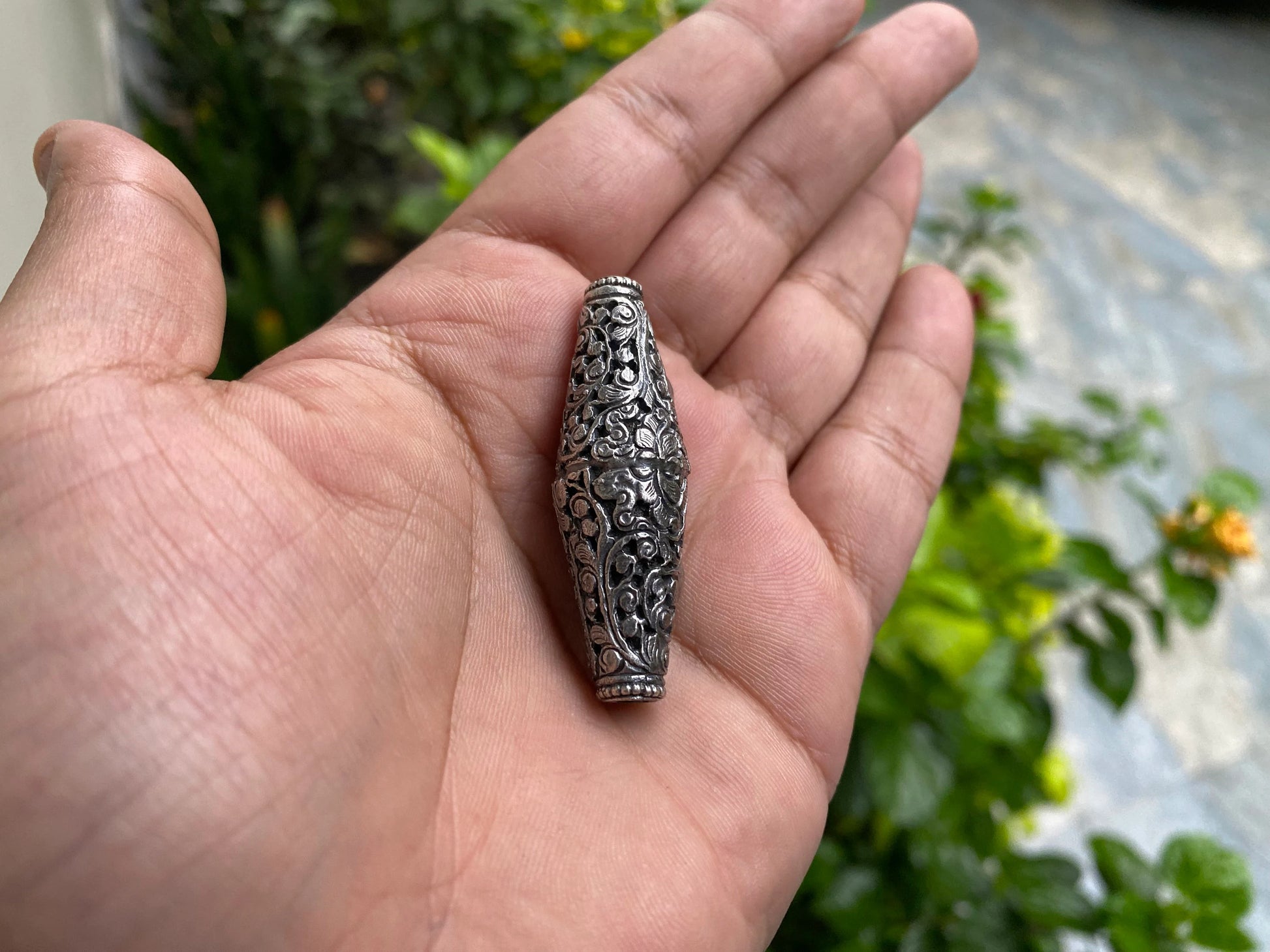 This listing is for 1 piece.At wholesale price!!! Measurement: approximately length 50 mm Bicone shape (measuring from hole to hole), width 17 mm from the widest side, hole size: 4 mm and weighs about 17 gm. Handcrafted in Nepal, these Tibetan beads are made of...