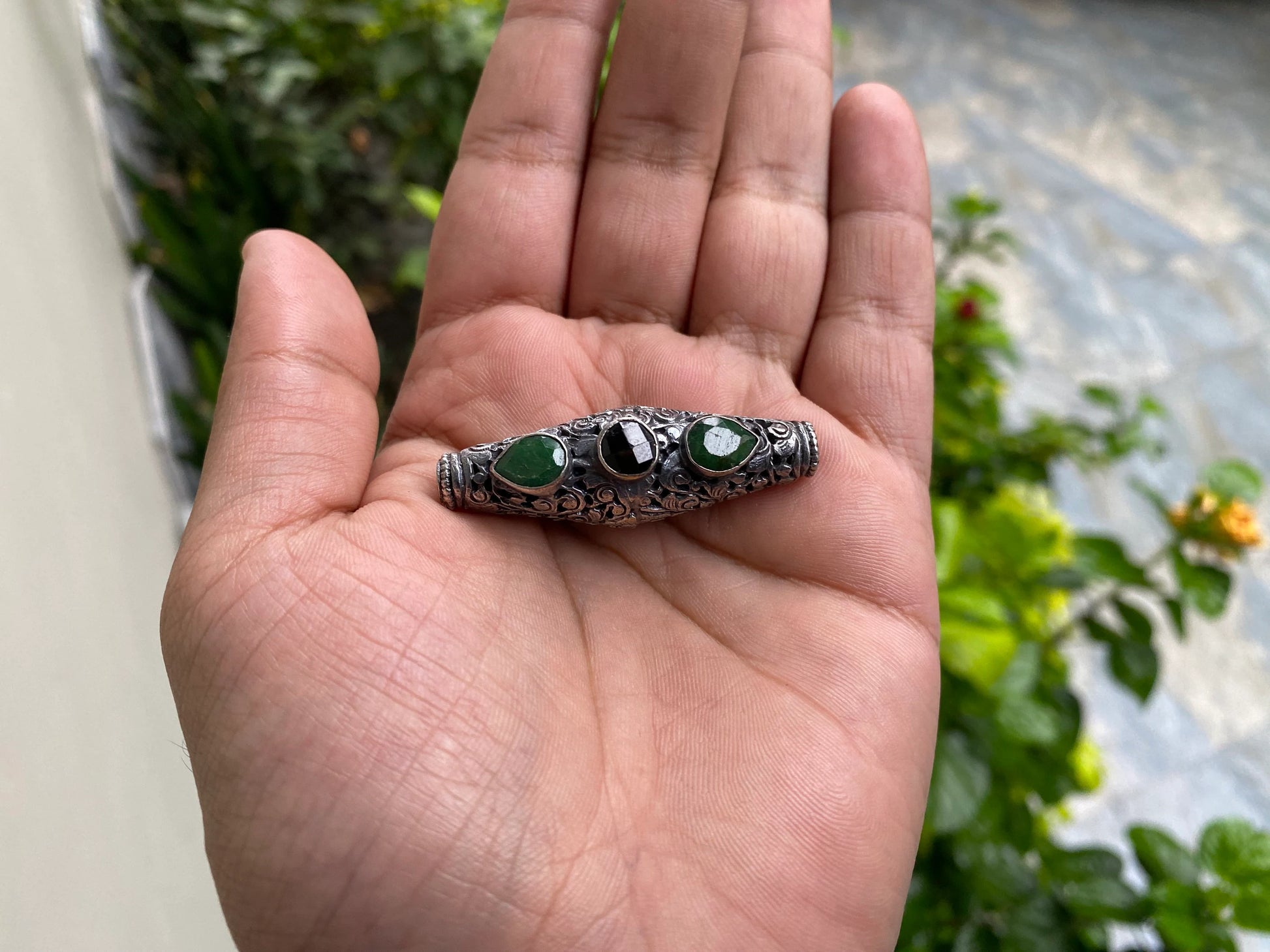 Handcrafted Copper Tibetan Beads with Black Onyx and Emerald Inlay for Necklace and Bracelet | Guru Beads, Mala Beads, Jewelry Making, Boho