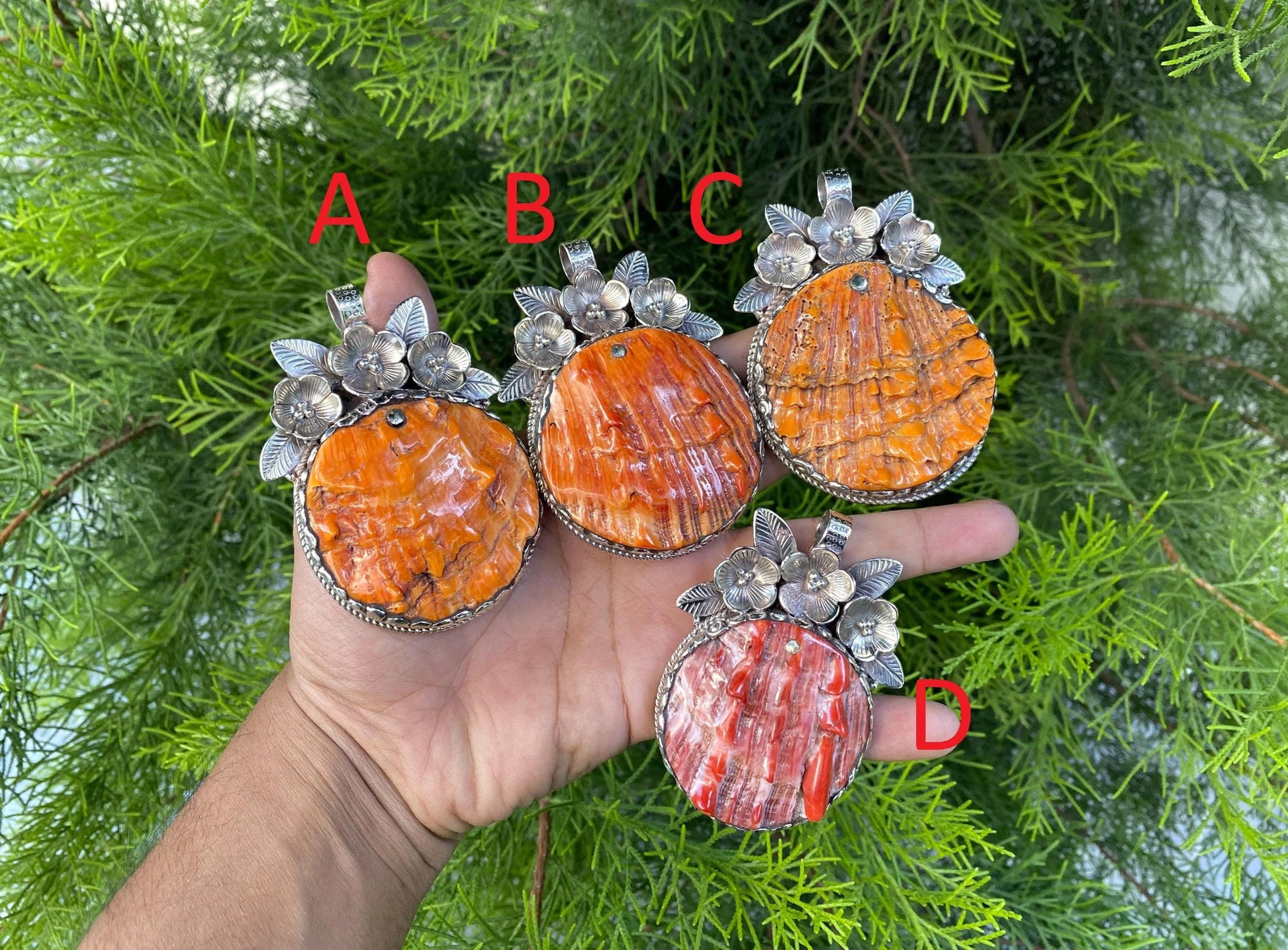 Handcrafted Large Spiny Oyster Tibetan Silver Pendant, Desert Sea Gem, Pendant for Necklace, Unique Bohemian Jewelry, Daily wear, Gift ideas
