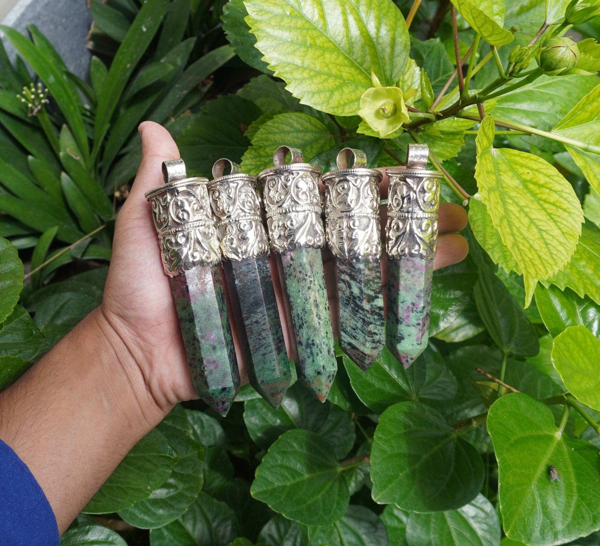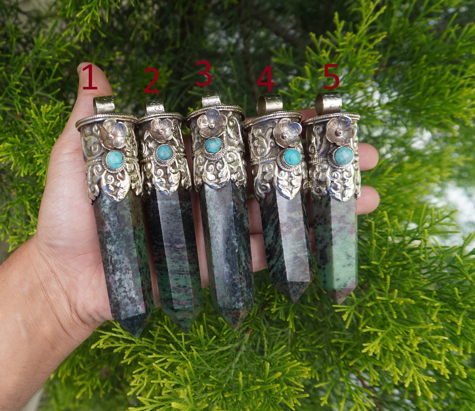 Handcrafted Natural African Ruby Zoisite Pendant with Turquoise Highlights for Daily Wear, Natural Gemstone Pendant, Pointed pendant
