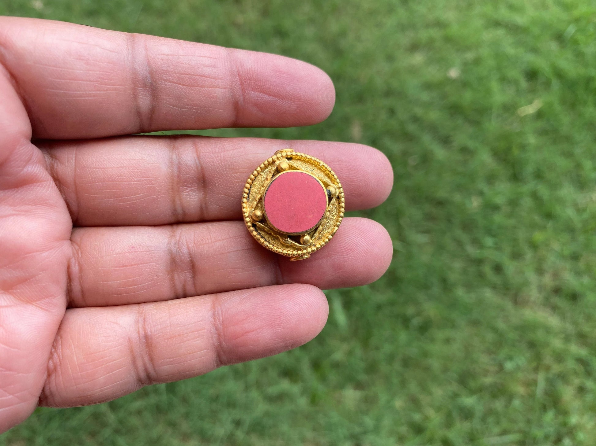 Handcrafted Nepal Bead, 18K Brushed Gold Overlay Over Brass Beads, Coral inlay Bead, Beads for Necklace, Mala Bead, Beads for Charm /Earring