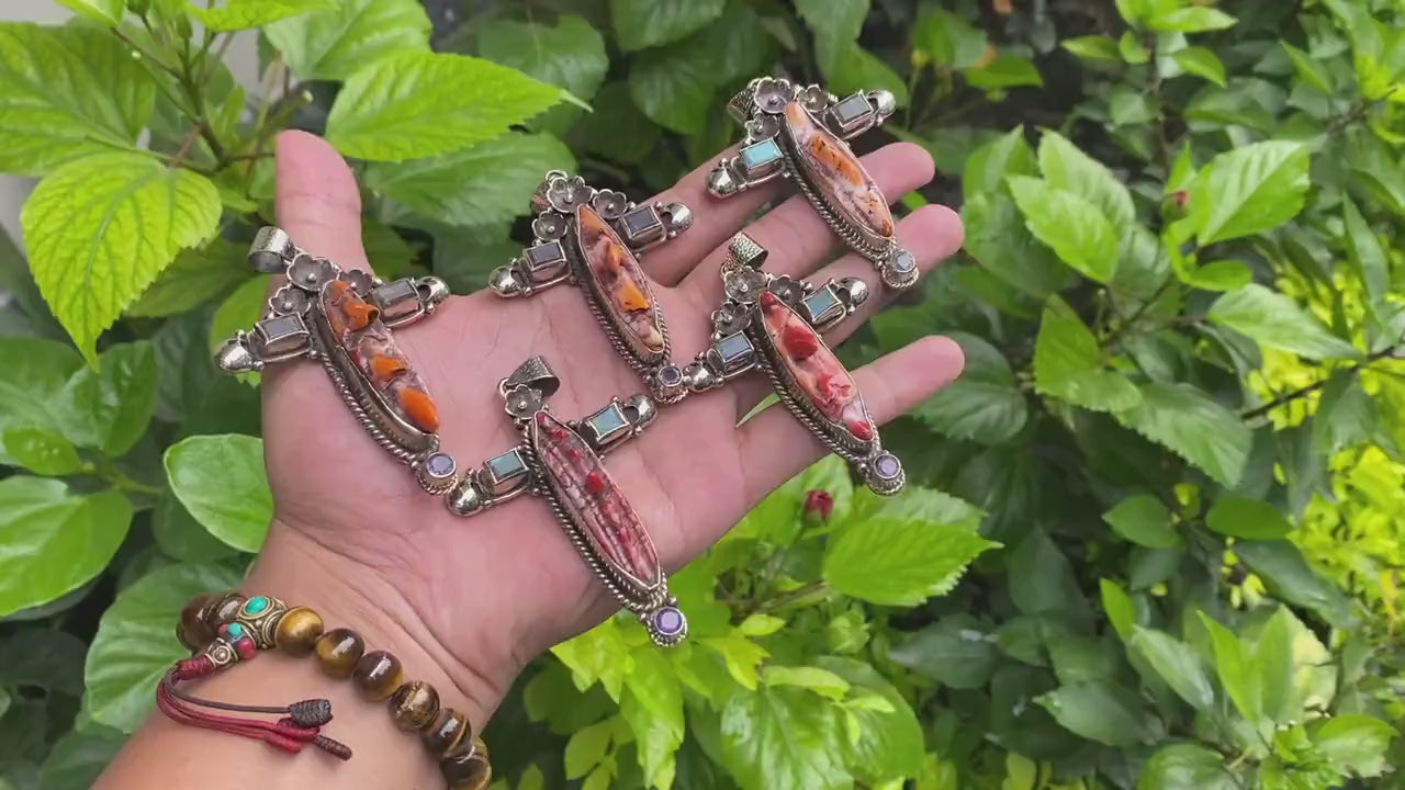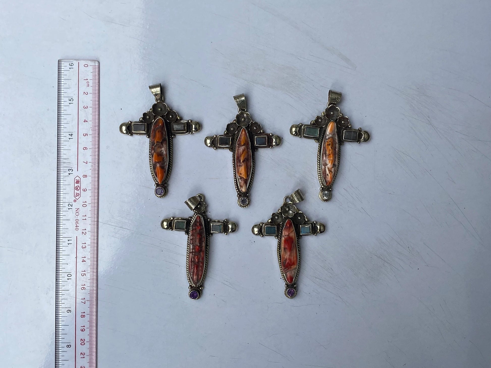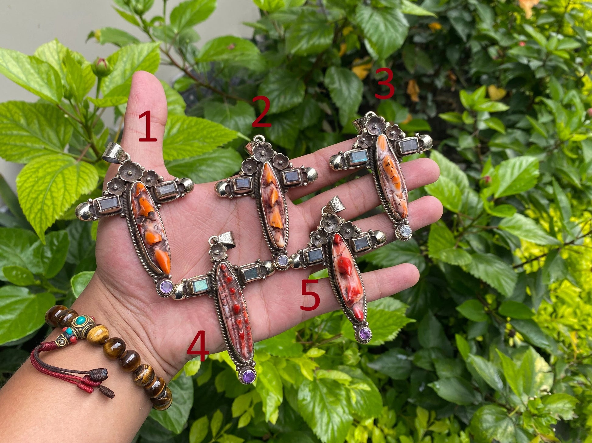 An eye-catching spiky orange oyster is nestled inside a Tibetan silver cross in this handcrafted bohemian pendant. Made to last and be worn every day, it's a distinctive unisex item that blends bohemian style with rustic charm. Because of its unique design and exquisite craftsmanship,...